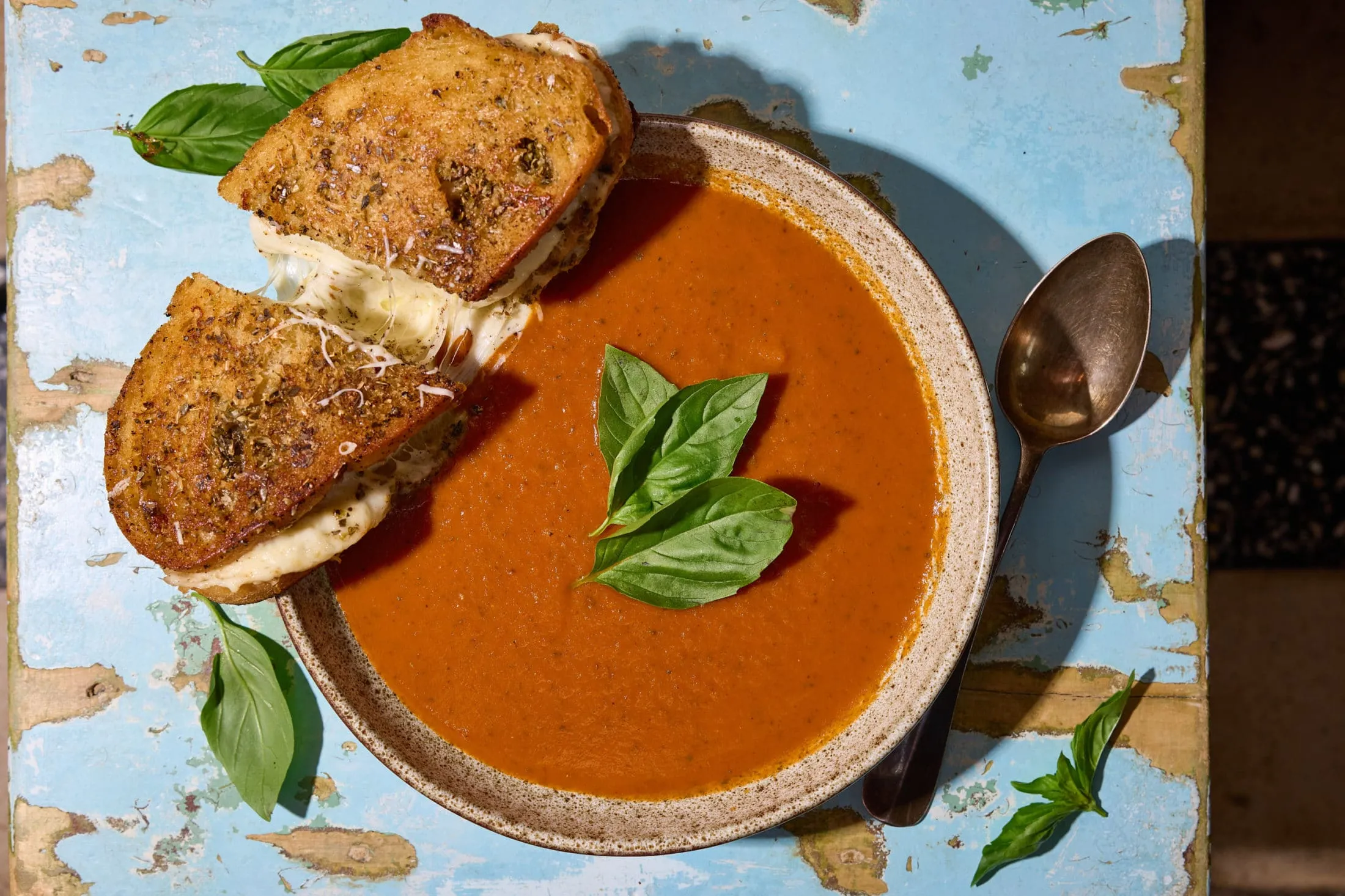 Pikáns paradicsomleves grillezett sajtos szendóval (Fotó: Street Kitchen)