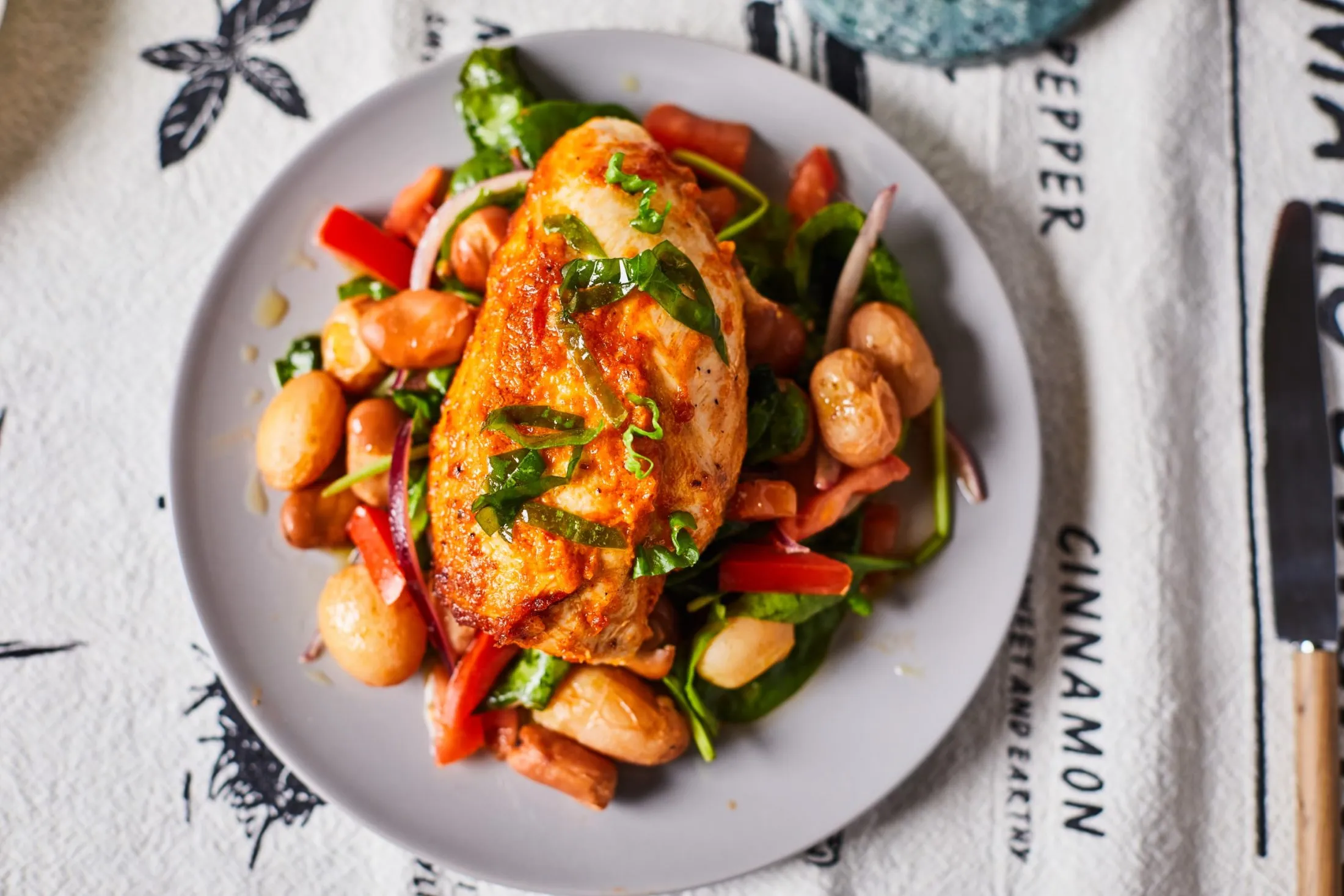 A csirkét sózzuk, borsozzuk és egy kevés olajon egy serpenyőben minden oldalát körbepirítjuk. Kiszedjük egy tepsibe, megkenjük a piri-piri szósszal és köré szórjuk az előfőzött krumplit, amit sózunk, borsozunk, meglocsoljuk egy kevés citromlével és olívaolajjal. 180 fokos sütőben 20 percig sütjük.
