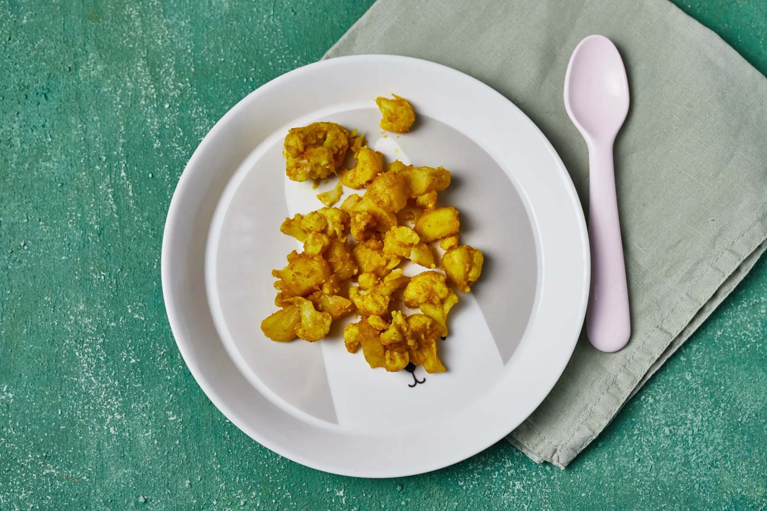 TIPP: Nem kell félni a fűszerektől, a világ számos pontján alapvető, hogy a babák is fogyasztják őket, gond nélkül. Nyilván ügyeljünk arra, hogy fokozatosan szoktassuk hozzá a babát, és a csípős vagy nagyon erőteljes ízt kerüljük (pl. chili, mustármag, torma stb.). A kömény és a főzés végén a fedő nélküli főzés (főzővíz elpárolgása) segít a babának, hogy a karfiol ne bántsa a pocakját. Az étel egészen kevés fűszerrel is kipróbálható, vagy a legbarátságosabb fűszerrel, a garam masalával önmagában, késhegynyi mennyiségben. Ez a fűszer minden nagyobb üzletben beszerezhető, és nagyon jól illik a zöldségekhez, szószos husikhoz. Tunkolós kenyérkével vagy basmati rizzsel is tálalhatjuk az ételt.