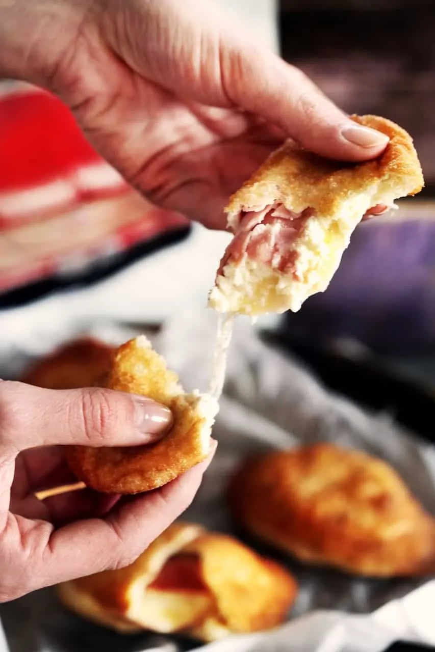 A panzerotti egy hasonlóan zseniális olasz street food kaja, mint az arancini, viszont azt leszámítva, hogy egy olajban kisütött dologról beszélünk és finom, másban nem nagyon hasonlít hozzá. Itt tulajdonképpen a mi hagyományos lángosunkhoz hasonlóan készítenek egy lepényt, csak itt nem rápakolják a feltéteket, hanem a közepébe töltik. Nóri most egy juhtúrós, sonkás verziót készített nektek, ami az olvadó, nyúlós sajt miatt még inkább gusztán néz ki.