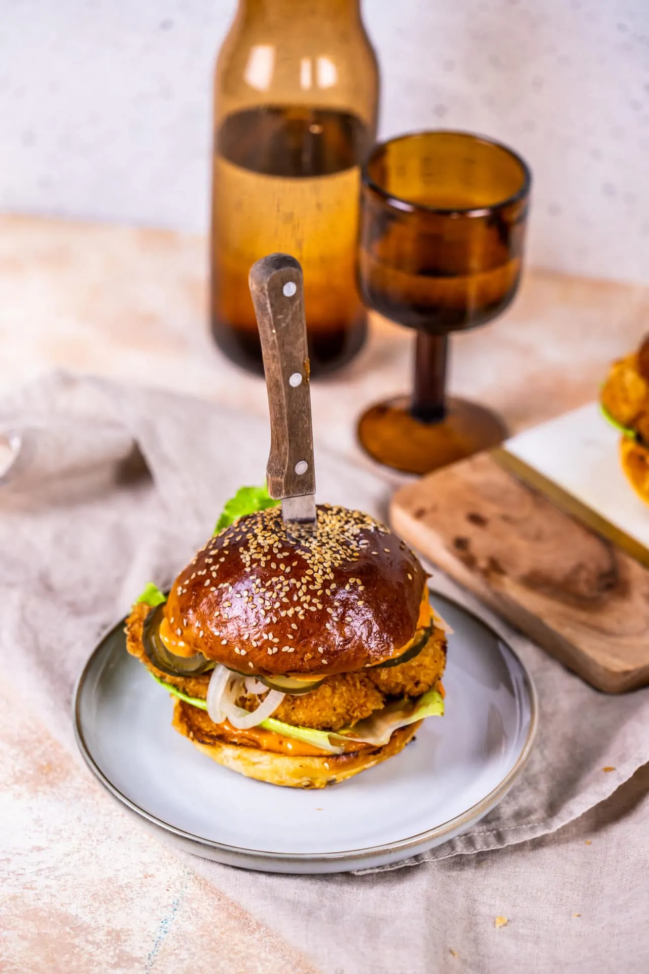 A félbevágott zsemlék belső felét kevés vajon megpirítjuk. A pirult zsemle alját megkenjük a szósszal, erre kerül a saláta, a töltött rántott hús, a savanyúság, majd a buci tetejét is megszószozzuk, és készen is vagyunk!
