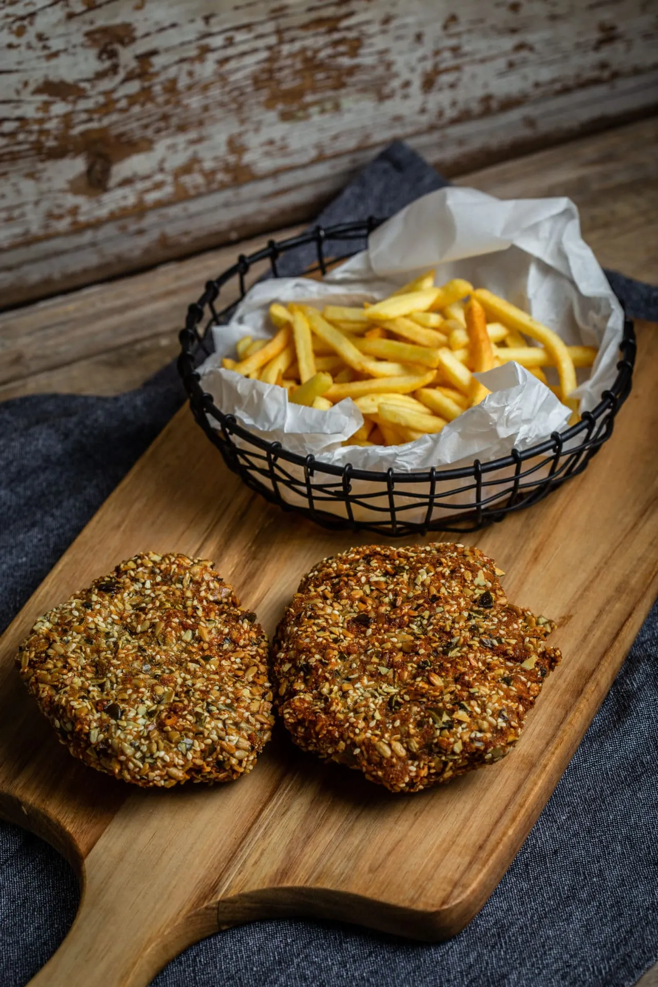 A szoba-hőmérsékletű húst sózzuk, borsozzuk. A bundázáshoz külön-külön összekeverjük a hozzávalókat. Ezután a hagyományos módon bebundázzuk a húst: először lisztbe, majd a tojásos keverékbe, végül a magvas morzsába forgatjuk. Ezután közepes hőmérsékleten kezdjük el sütni, oldalanként 4-5 percet, majd feljebb vesszük a hőt, és aranybarnára sütjük. Papírtörlőn lecsepegtetjük. Sült krumplival tálaljuk.