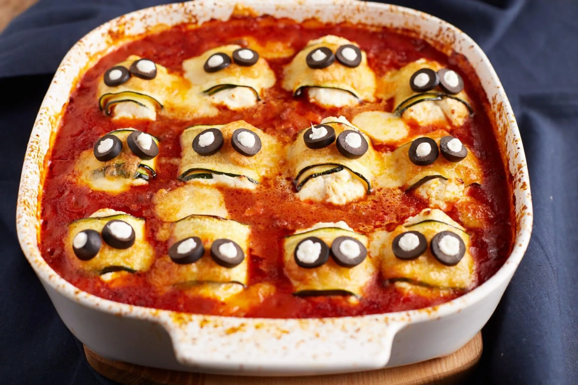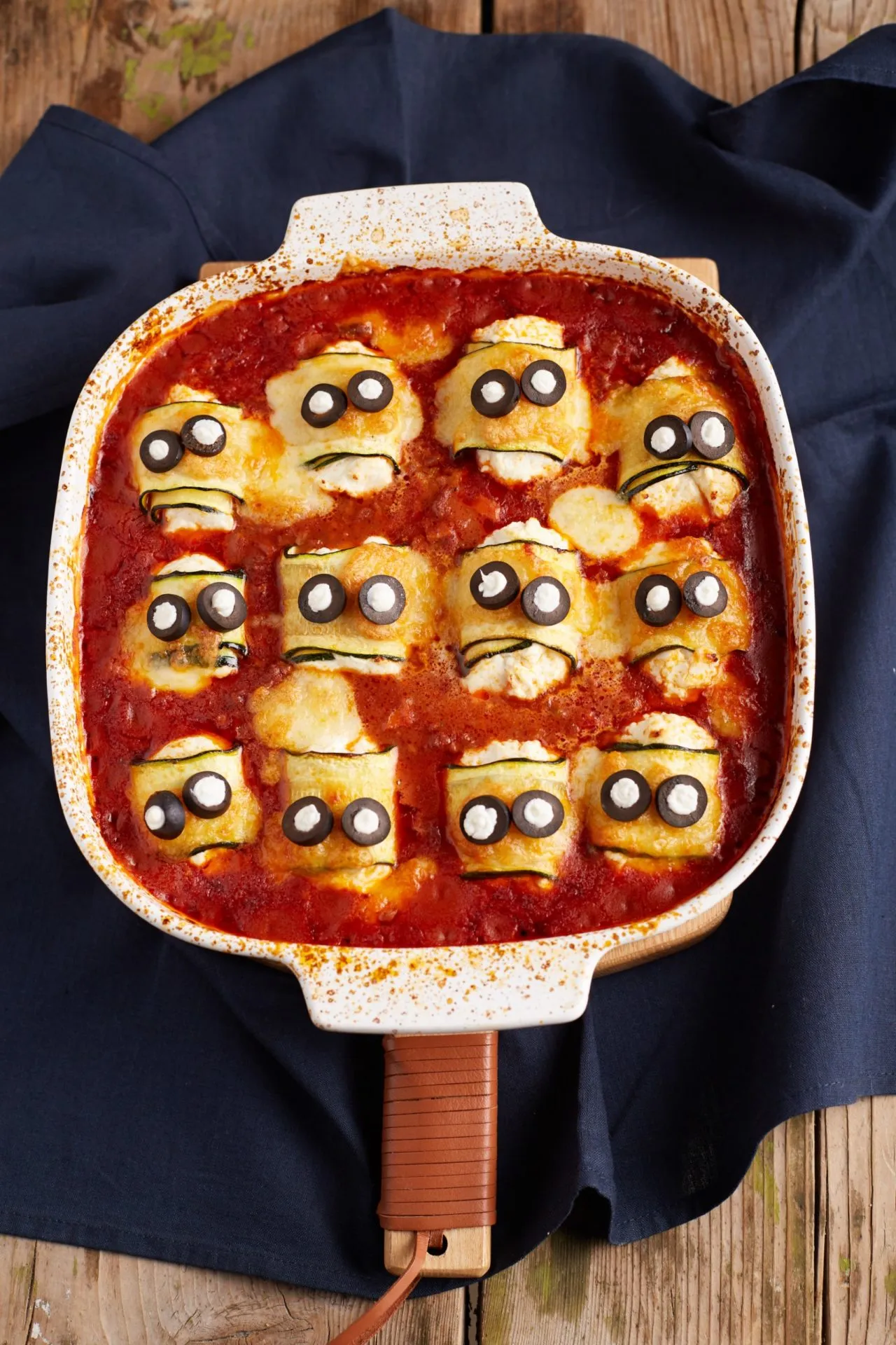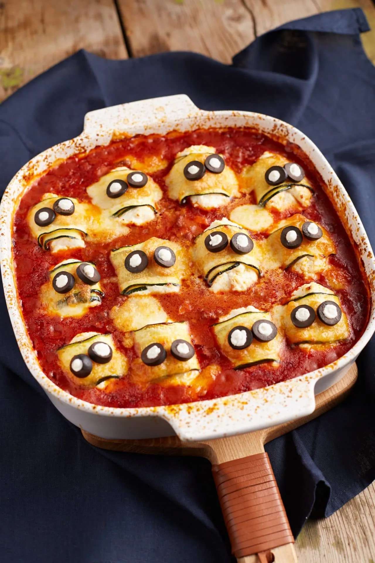 A legvégén olajbogyószeleteket és egy kevés ricottakrémet rakunk a tetejére, mintha szemek lennének.