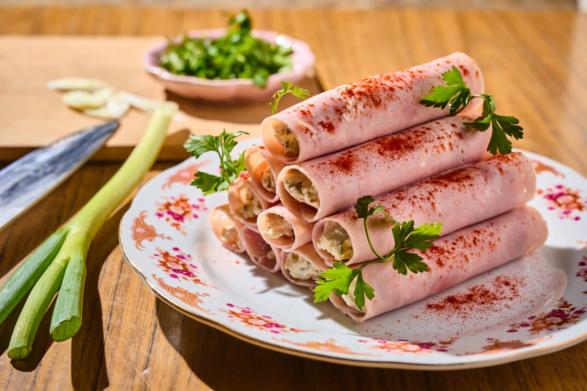 A sajtkrémes sonkatekercs egyszerű, gyors, mégis látványos – és pont ezért maradt ennyire népszerű. Előnye, hogy előre elkészíthető, és hűtőben 1–2 napig gond nélkül eláll.