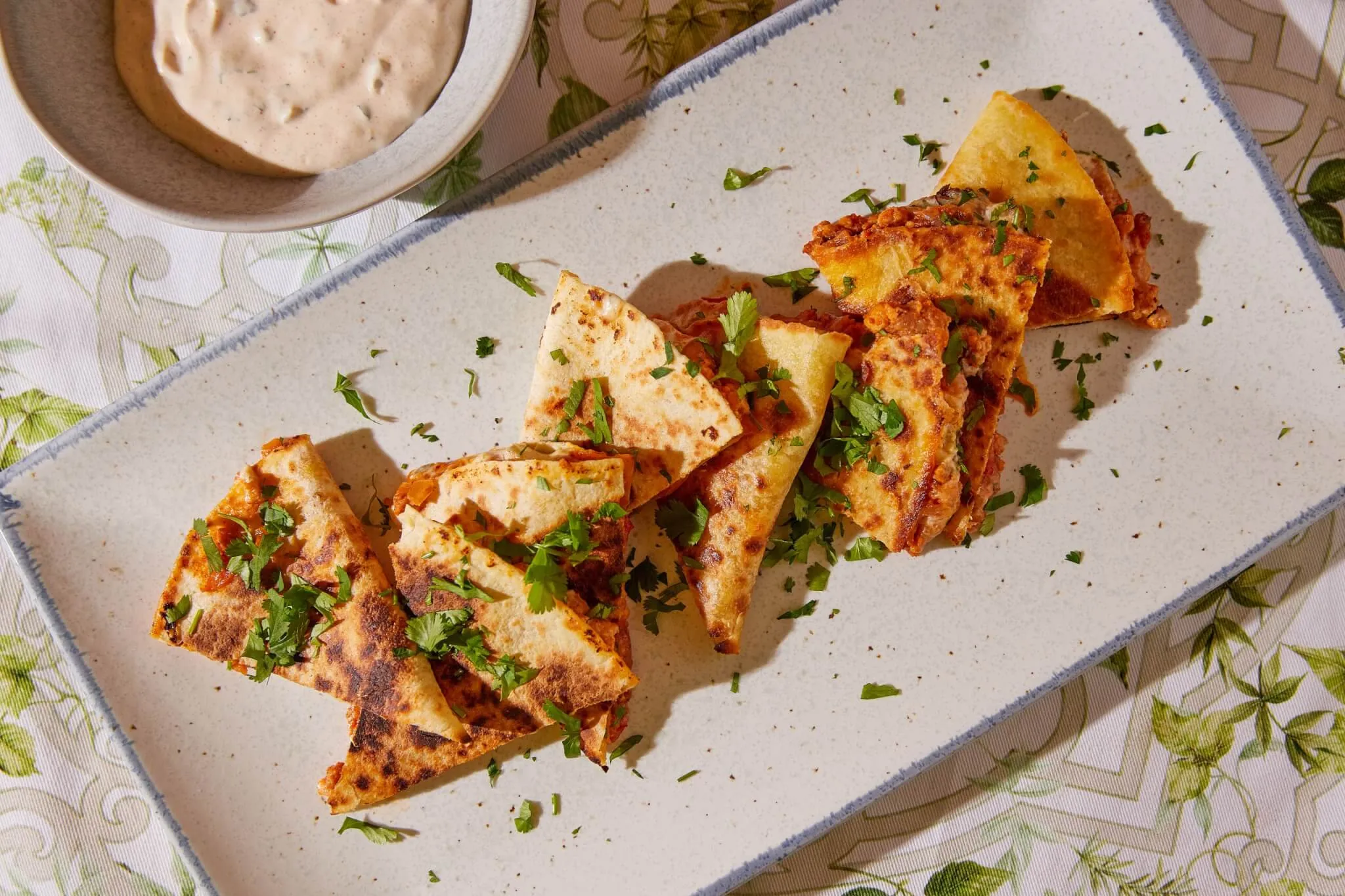 Ahogy a husi elkészült, egy tiszta serpenyőt közepes fokozatra hevítünk, kikenjük fél evőkanál olajjal, és beleteszünk egy tortillalapot. A tortilla egyik felét megkenjük egy kis szósszal, reszelünk rá mozzarellát, rádobunk a húsos keverékből, majd jöhet rá egy kis cheddar sajt is. A másik felét ráfordítjuk, összesütjük és mindkét oldalát ropogósra pirítjuk.