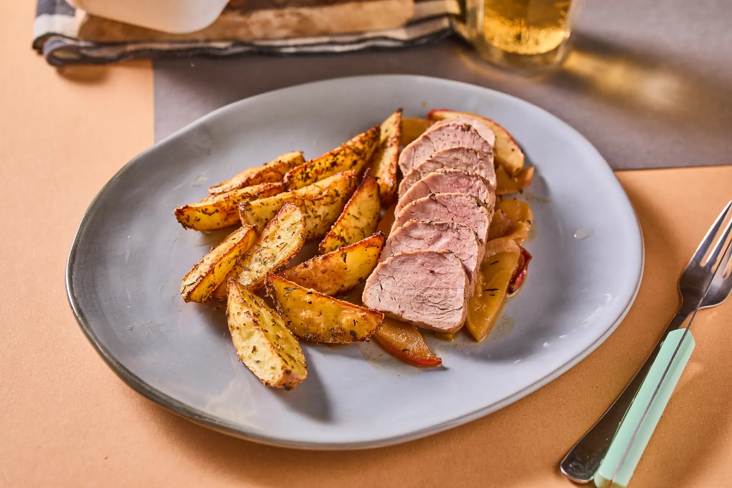 A sertésszűz az egyik leggyorsabban elkészíthető húsféle, ami elegáns tálalásban is megállja a helyét. A semlegesebb íze miatt remekül párosítható gyümölcsökkel – ebben a receptben szaftos, karamellizált almával és egy kis ciderrel kerül egy tányérra. A hús előpirítása segít megőrizni a szaftosságát, a sütő pedig elvégzi a többit. Egyszerű, mégis látványos fogás, amit bátran kipróbálhatnak a kezdők is.
