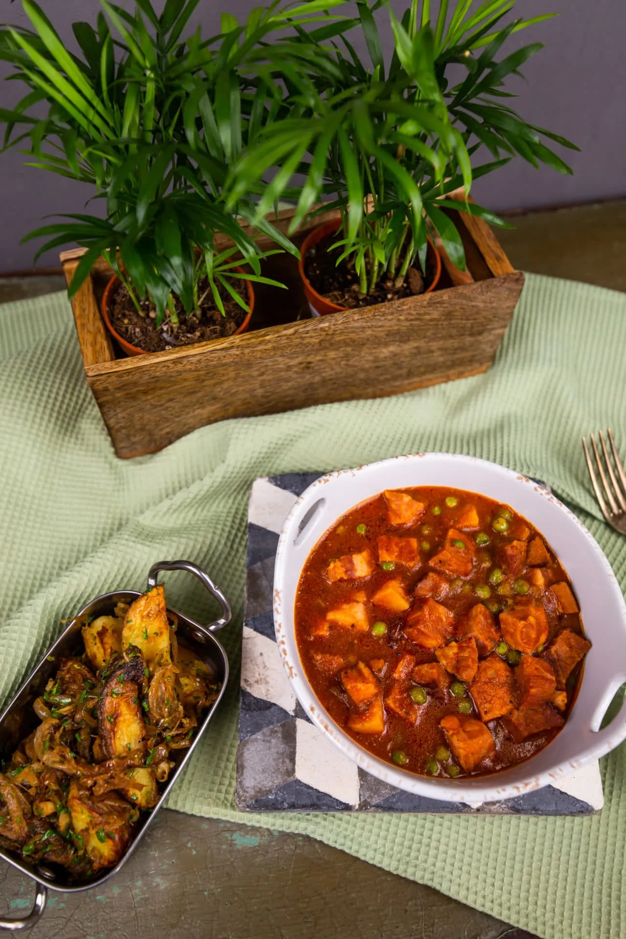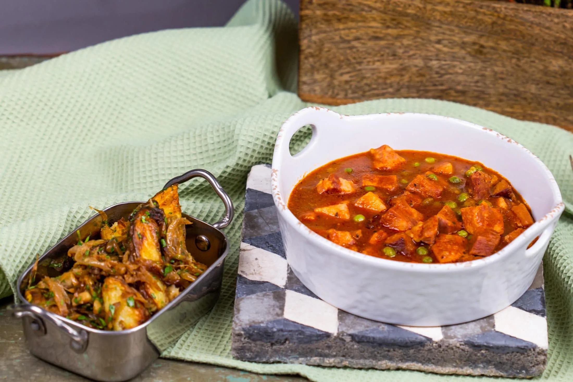 Az aprított hagymát és fokhagymát elkezdjük pirítani 2-3 evőkanál zsíron, majd hozzádobjuk az aprított paprikát, és az egészet alaposan lepirítjuk. Félrehúzzuk, sózzuk (de csak óvatosan, mert a füstölt húsok sósak), borsozzuk, rászórjuk a fűszerköményt és a pirospaprikát, hozzáadjuk az erőspaprika-krémet, elkeverjük, majd jöhet bele a paradicsom és egy kevés alaplé. Az egészet felforraljuk, és egy botmixerrel turmixoljuk. Beletesszük a felkockázott füstölt lapockát, a babérlevelet és az aprított kakukkfüvet, majd a maradék alaplevet. Addig főzzük, amíg a lapocka meg nem puhul, aztán hozzáadjuk a borsót és a felkockázott füstölt sonkát, majd további 10 percig alacsony lángon rotyogtatjuk, és kész is vagyunk vele.