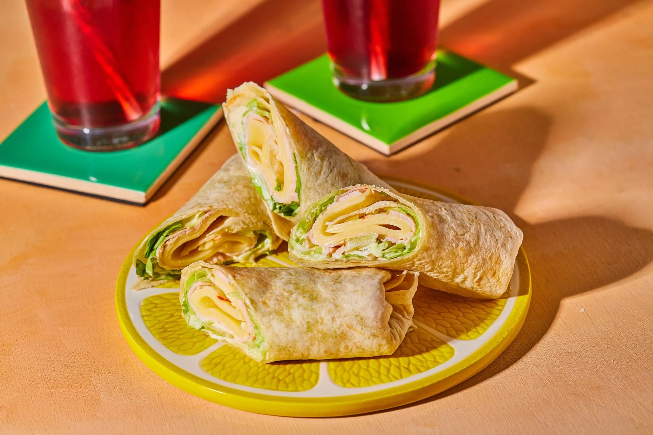 A sonkás-sajtos tortilla elkészítéséhez először a tortillákat mikróba dobjuk néhány másodpercre, hogy felpuhuljanak. Megkenjük majonézzel az egész lapot, majd a hozzánk közelebb eső részre pakolunk 2 szelet sonkát, sajtot és egy kevés nagyobb darabokra vágott salátát. A két szélét ráhajtjuk a közepére, kb. 2 cm szélesen, majd feltekerjük és félbevágjuk.
