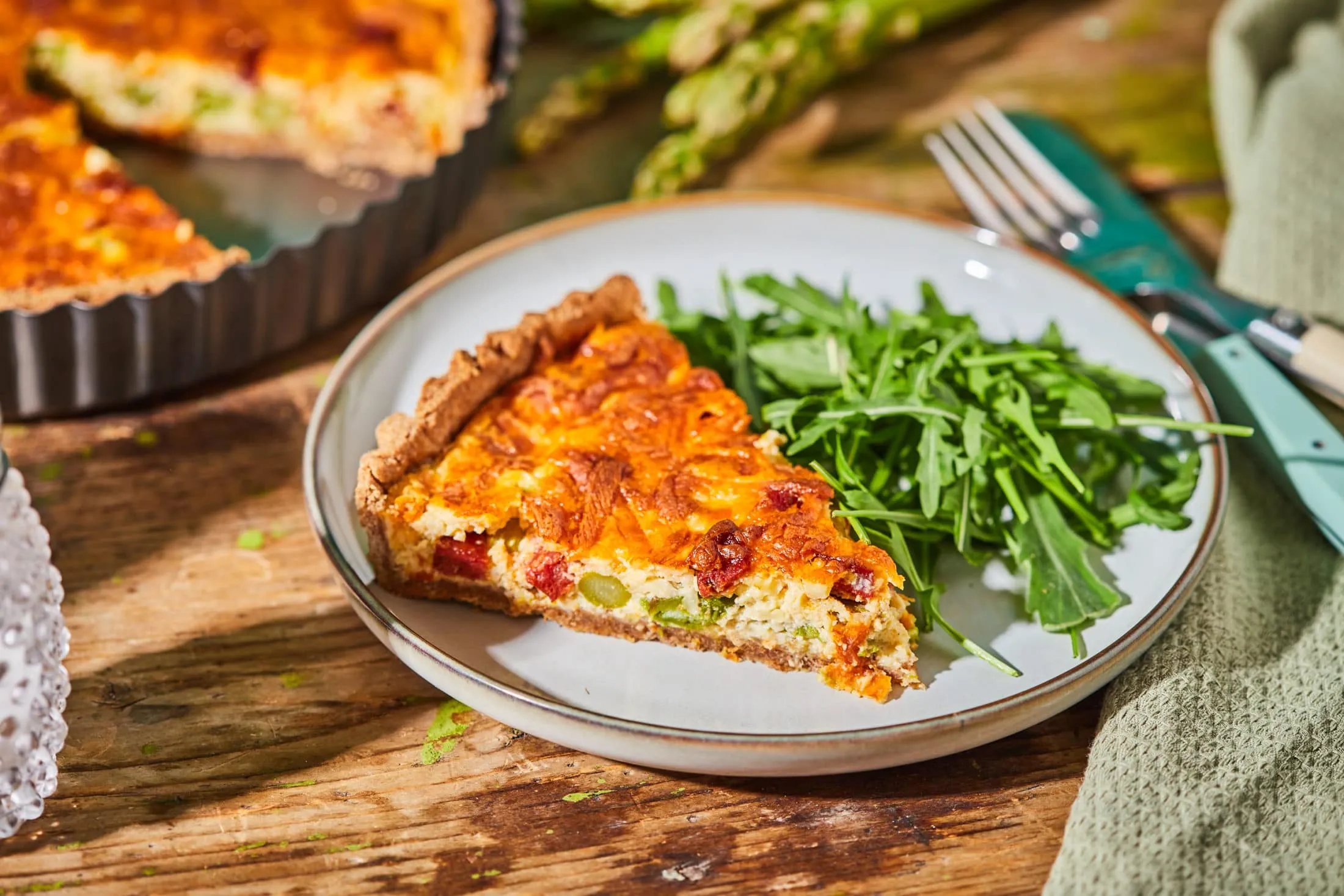 Az elősütött tésztára tesszük a spárgát, leöntjük a tojásos keverékkel, ráreszeljük a sajtot, és mehet vissza a sütőbe 30-40 percre. Tálalás előtt hagyjuk állni 10 percet. A spárgás quiche mellé illik némi saláta, kínálhatjuk például rukkolával.