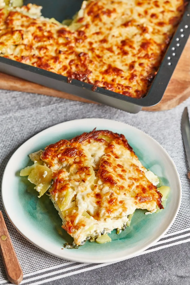 Megszórjuk a spenótos-baconös keverékkel, majd jöhet rá még egy adag krumpli, amit szintén sózunk, borsozunk. A tejszínt és tojást összekeverjük, szintén sózzuk, borsozzuk, és leöntjük a rakott krumplit. Megszórjuk a reszelt sajttal, és alufóliával letakarjuk. 180 fokra előmelegített sütőben letakarva 1 órán át sütjük, majd levesszük a fóliát és további 20-30 percig sütjük.A spenótos rakott krumpli tálalásaHa tetszett a spenótos rakott krumpli, csekkoljátok a videóinkat, exkluzív tartalmakért pedig lájkoljatok minket a Facebookon, és kövessetek minket az Instagramon!