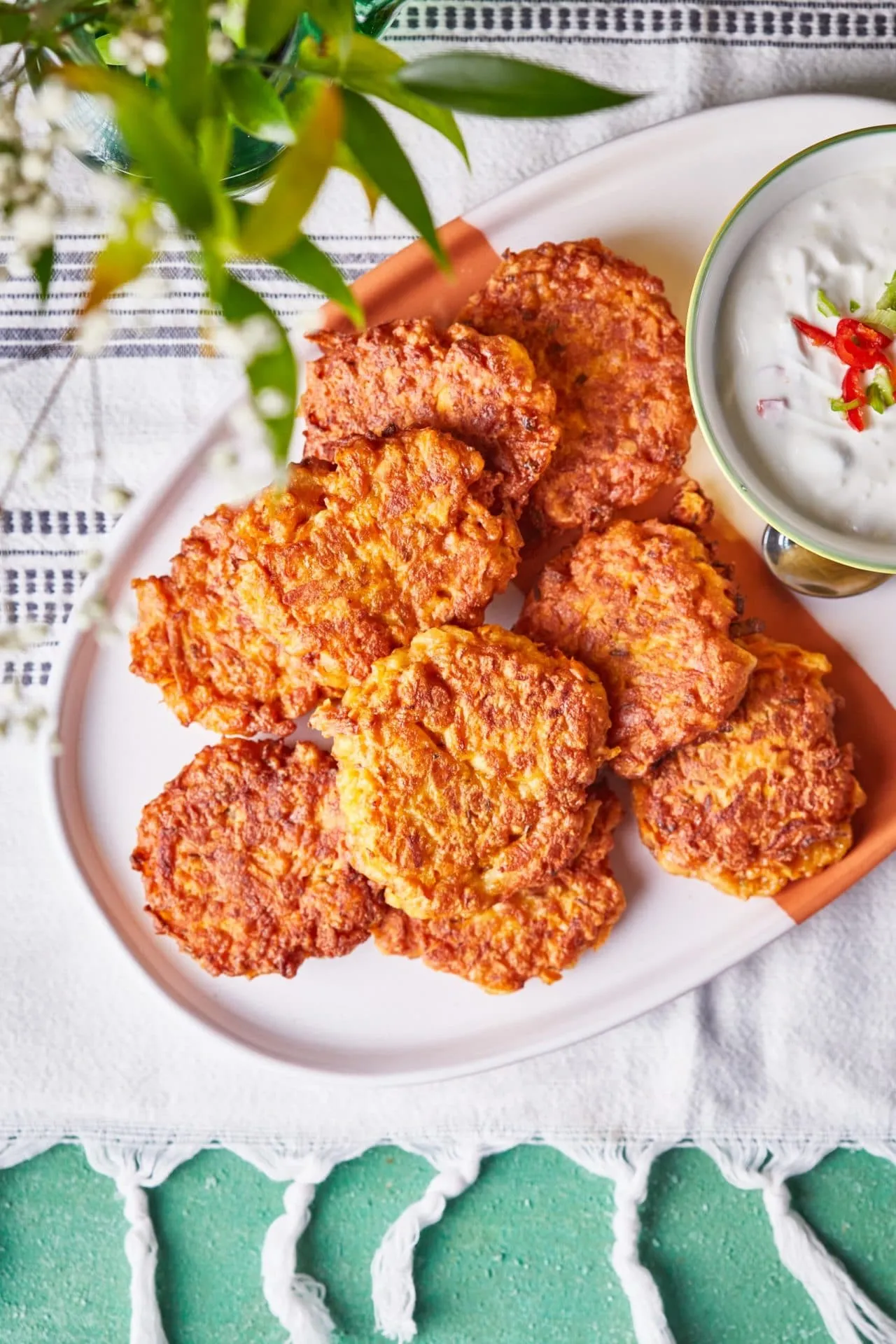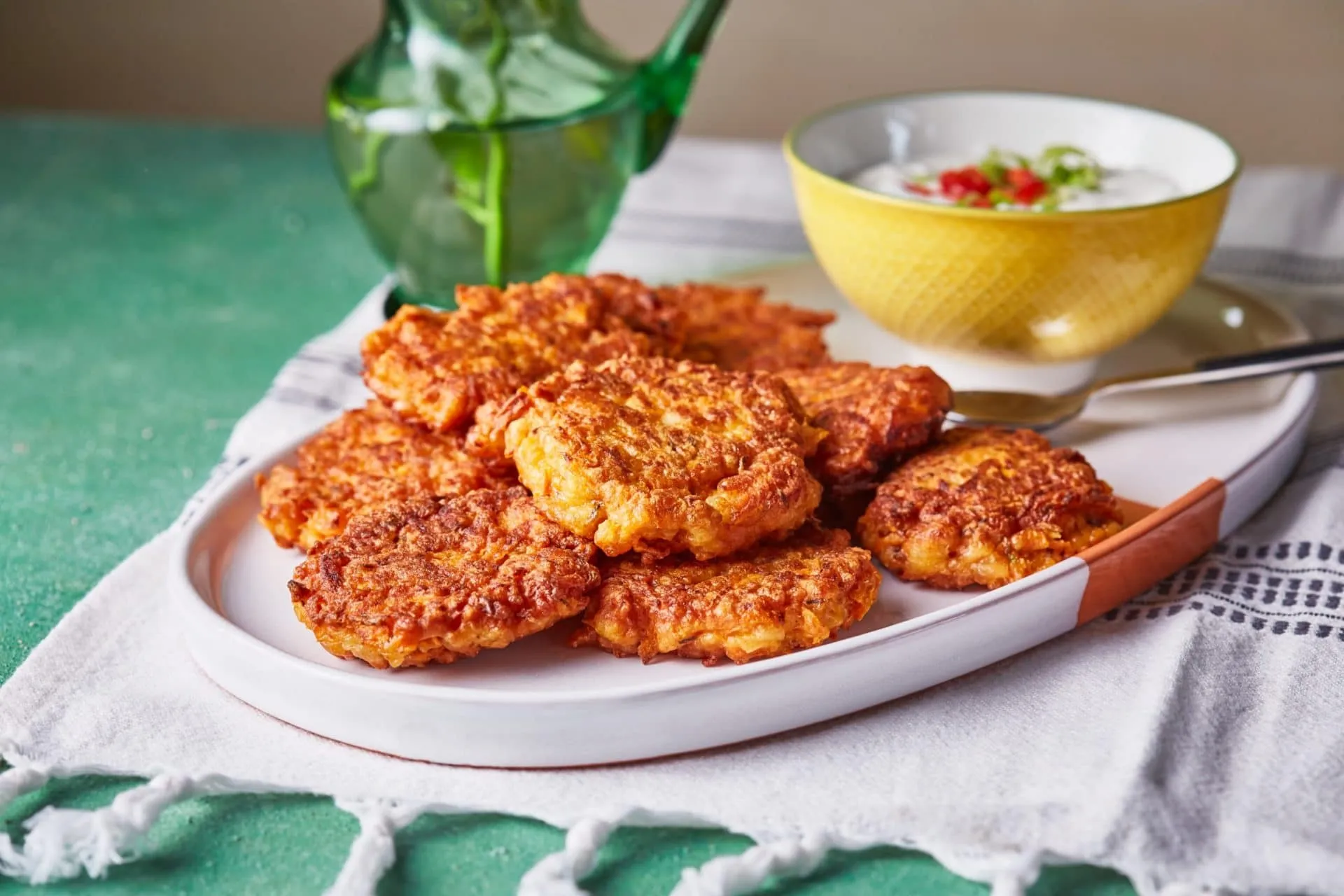 Ha az olaj kellően felhevült (ha beledobunk egy csipetnyi keveréket, azonnal sisteregni kezd), kb. 1-1 evőkanálnyi keverékből golyókat vagy korongokat formázunk, és mindkét oldalukon 2-3 perc alatt aranybarnára sütjük őket (figyeljünk rá, hogy ne rakjuk tele a serpenyőt, inkább több körben süssük ki őket). Szűrőkanállal papírtörlőre szedjük a golyókat, hogy a felesleges olaj lecsepeghessen, majd melegen tálaljuk.
