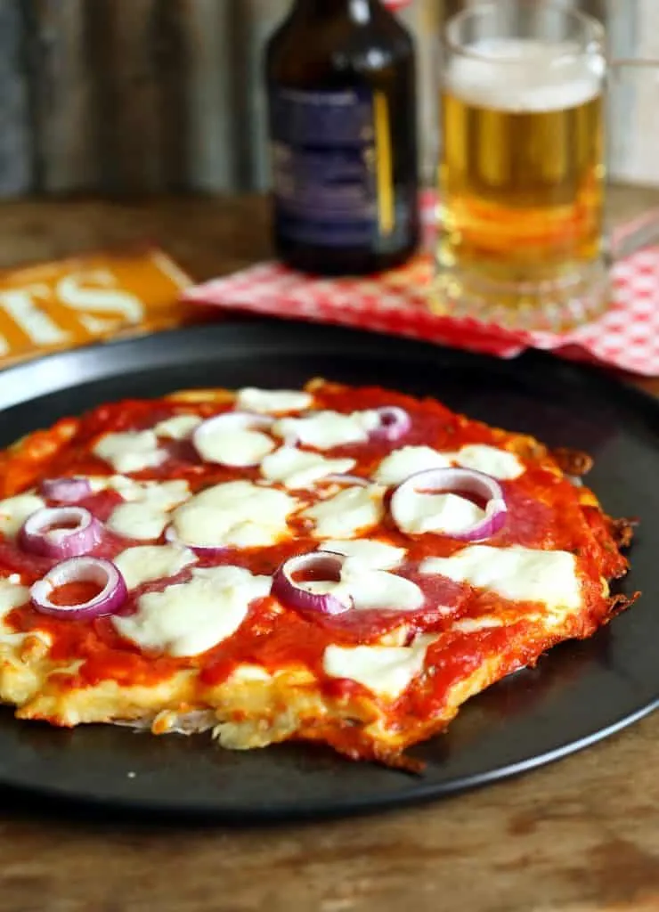 Ha ez megvan, egy tepsibe sütőpapírt teszünk, és elkezdünk egy kört kirakni a krumpliból, odafigyelve arra, hogy egy rétegben, de mindenhová jusson belőle. Ha megtelt a kör, gazdagon megszórjuk a reszelt mozzarellával, hogy a résekbe is jusson, és 200 fokra előmelegített sütőben sütjük 8-10 percig, hogy a sajt megolvadjon.