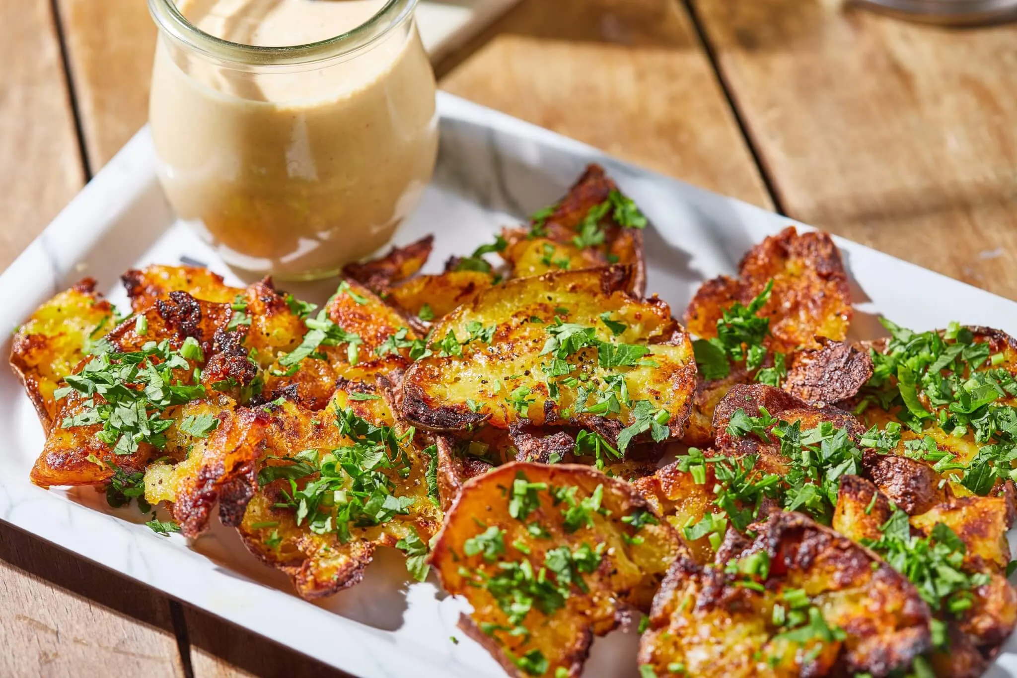 A krumplit megmossuk, 4-5 cm-es darabokra vágjuk (ha ekkora alapból, akkor nem kell darabolni). Sós vízben megfőzzük, leszűrjük, és egy tepsire rakjuk. Egy kis tálkával vagy pohárral minden darabot megnyomunk felülről úgy, hogy kicsit megroppanjon de ne essen szét teljesen. Meglocsoljuk egy kevés olajjal, sózzuk, borsozzuk, és 220 fokra előmelegített sütőbe tesszük 20 percre. Ezután kivesszük, megforgatjuk, sózzuk, borsozzuk a másik oldalát is, és visszarakjuk még 10 percre.