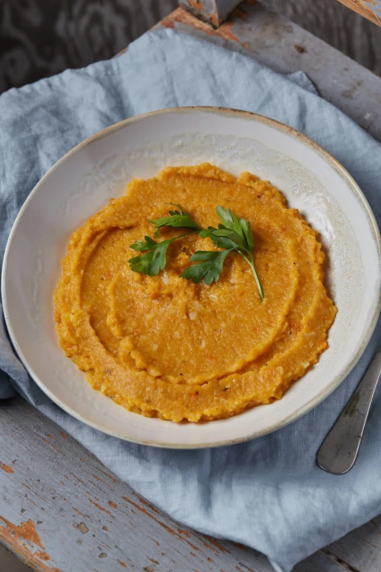 Ezután egy lábasba tesszük a zöldségeket, meglocsoljuk egy kis borral, hozzáöntjük az alaplevet is, és forrásig hevítjük. Ezután botmixerrel pürésítjük, hozzáadjuk a vajat, és kész is.