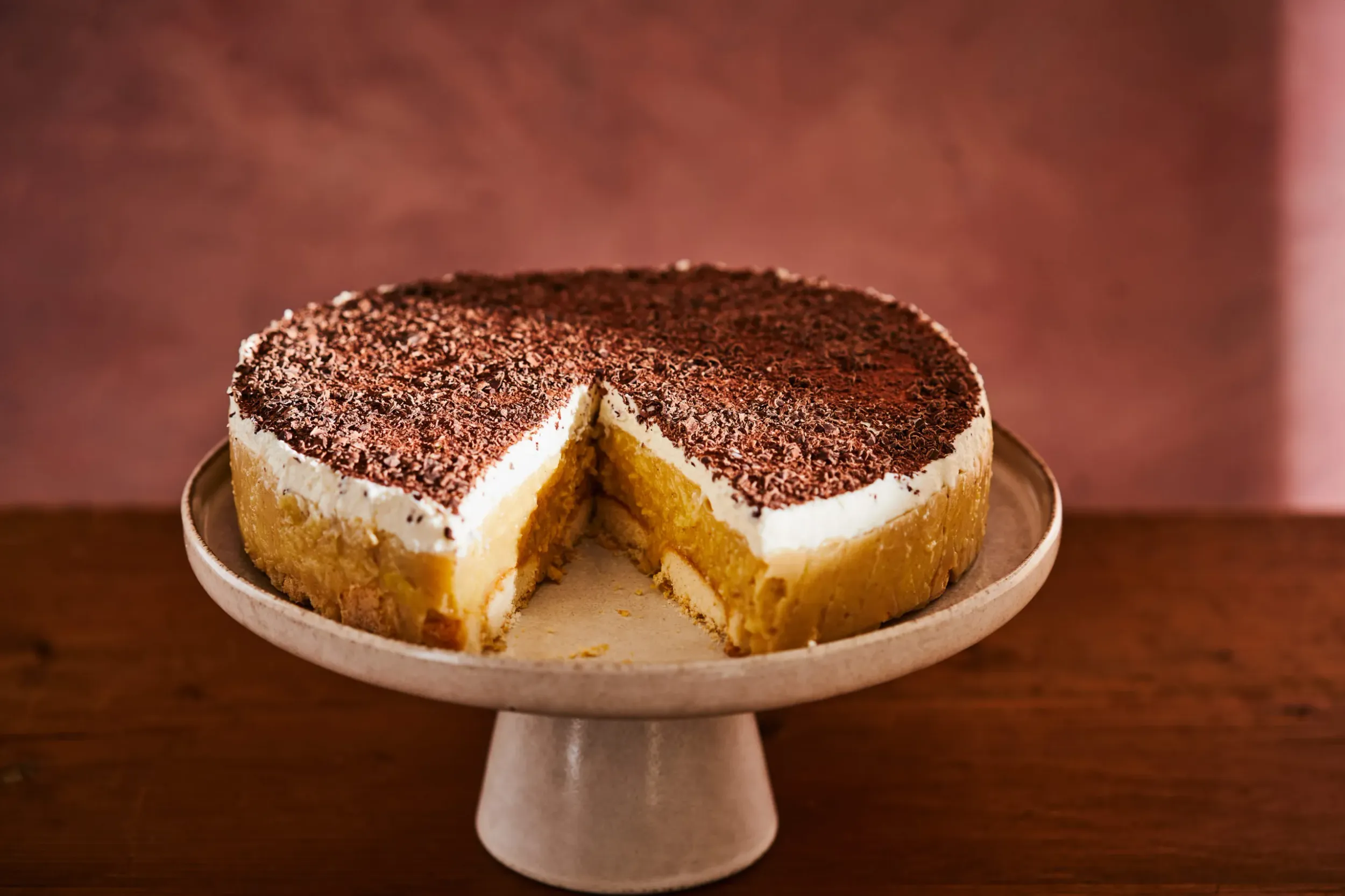 A babapiskótát a tortaforma aljára rakjuk, rákenjük az almás krémet, és hagyjuk teljesen kihűlni.