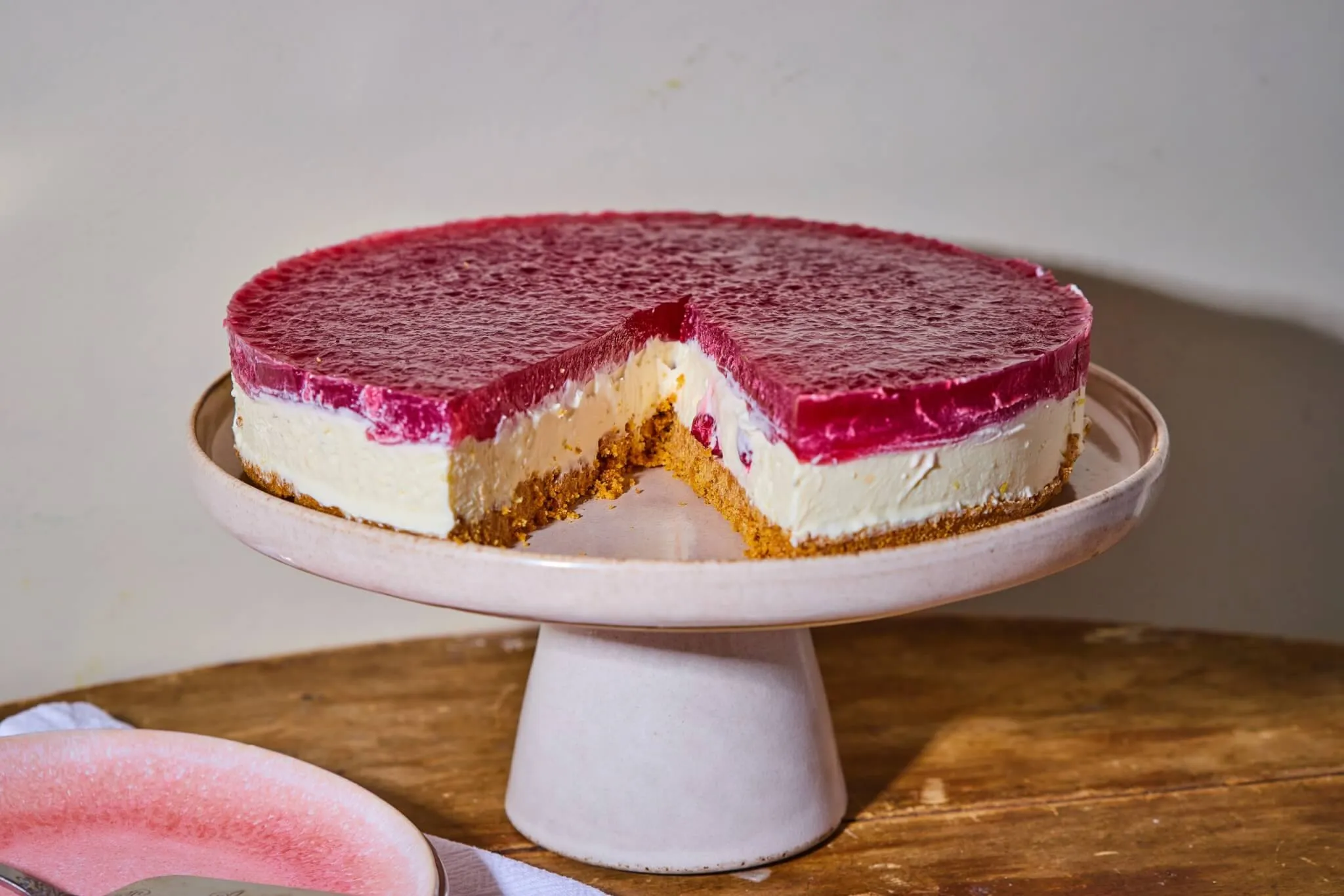 A meggyes zseléréteghez a zselatint elkeverjük a vízben, és pár percig állni hagyjuk, hogy feloldódjon. A meggyet és az eritritet egy kisebb lábasba tesszük, és közepes lángon felforraljuk, majd leszűrjük, és a meggyléhez öntjük a feloldódott zselatint, elkeverjük, és hagyjuk szobahőmérsékletűre hűlni.