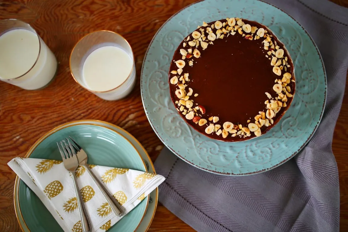 A tejszínt felforraljuk és összekeverjük a mogyorókrémmel, majd a fehér krémre egyengetjük, megszórjuk durvára vágott pirított mogyoróval és hűtőbe tesszük 3-4 órára, de a legjobb, hogy egész éjjelre, hogy jól összeérjenek az ízek. Hűtőben minőségromlás nélkül 2-3 napig lehet tárolni, bár nem hiszem, hogy ennyi ideig megmaradna ez a szuper torta.