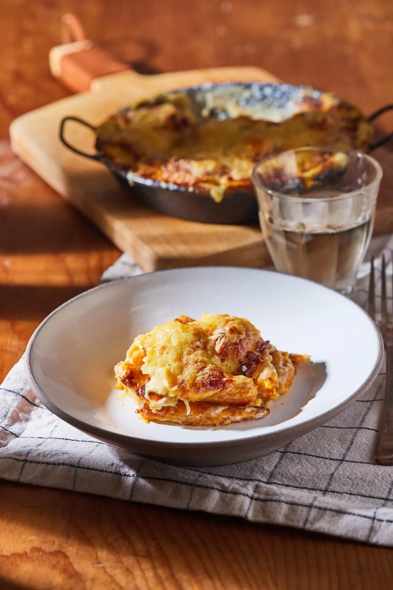 Az ételt akár így is fogyaszthatjuk, de ha még sajtosabban szeretnénk enni, akkor az egészet egy hőálló tálba tesszük, reszelünk rá még egy kis sajtot, és 180 fokra előmelegített sütőben aranybarnára sütjük.