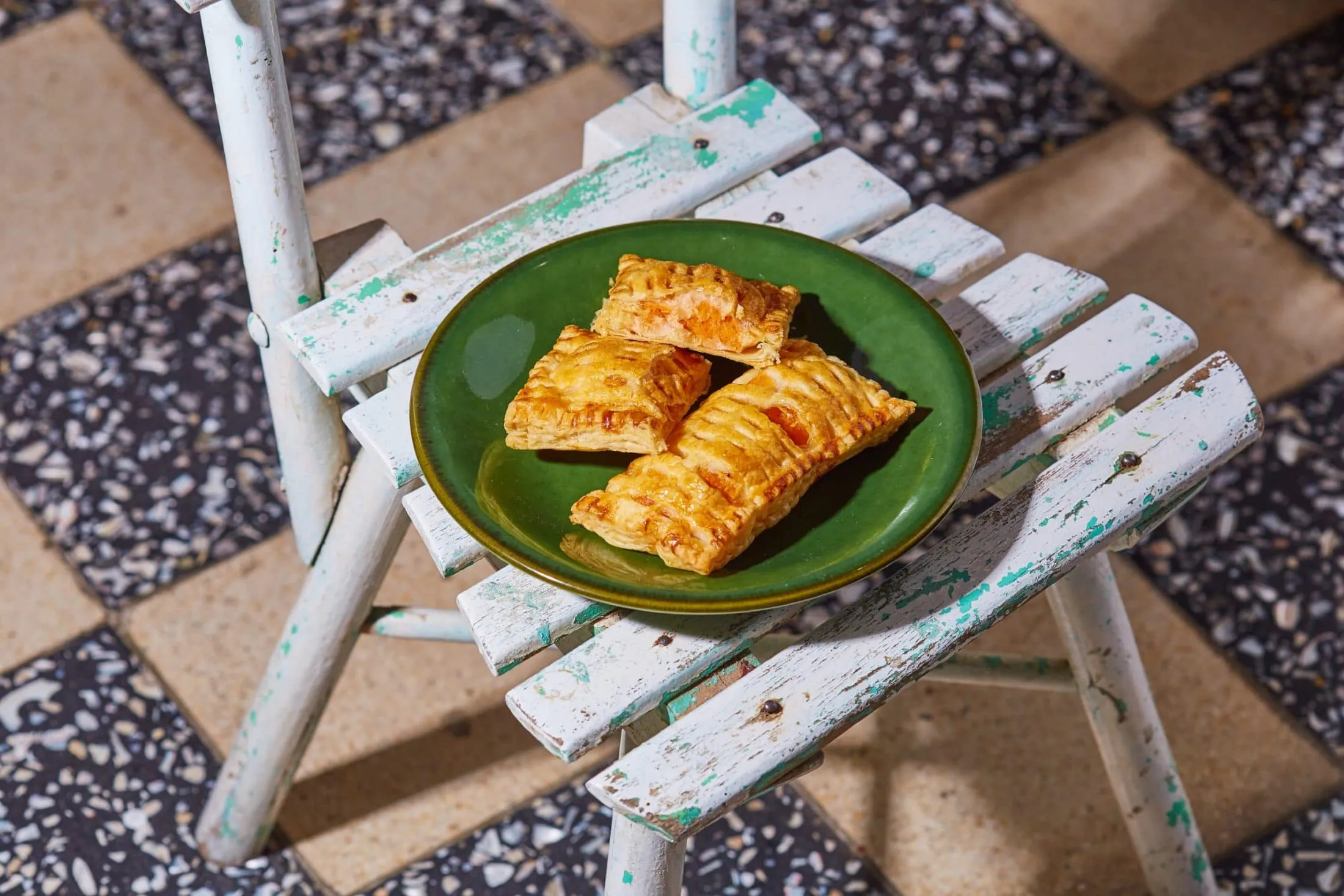 A másik hatos fogatot körülbelül centinként bevagdossuk, és hosszában és széltében is kicsit széthúzzuk, hogy tökéletesen fedje az alsó részt. A két rész találkozását villával lenyomkodjuk, majd mindegyik táska tetejét lekenjük a felvert tojással.