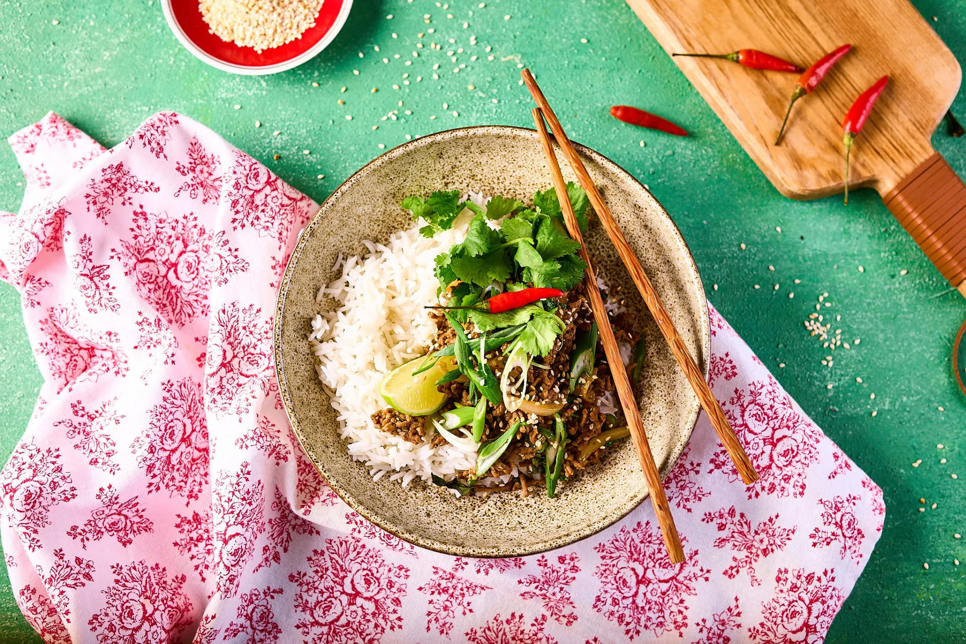 Marhahúsos thai green curry sáfrányos szeklicés jázminrizzsel
