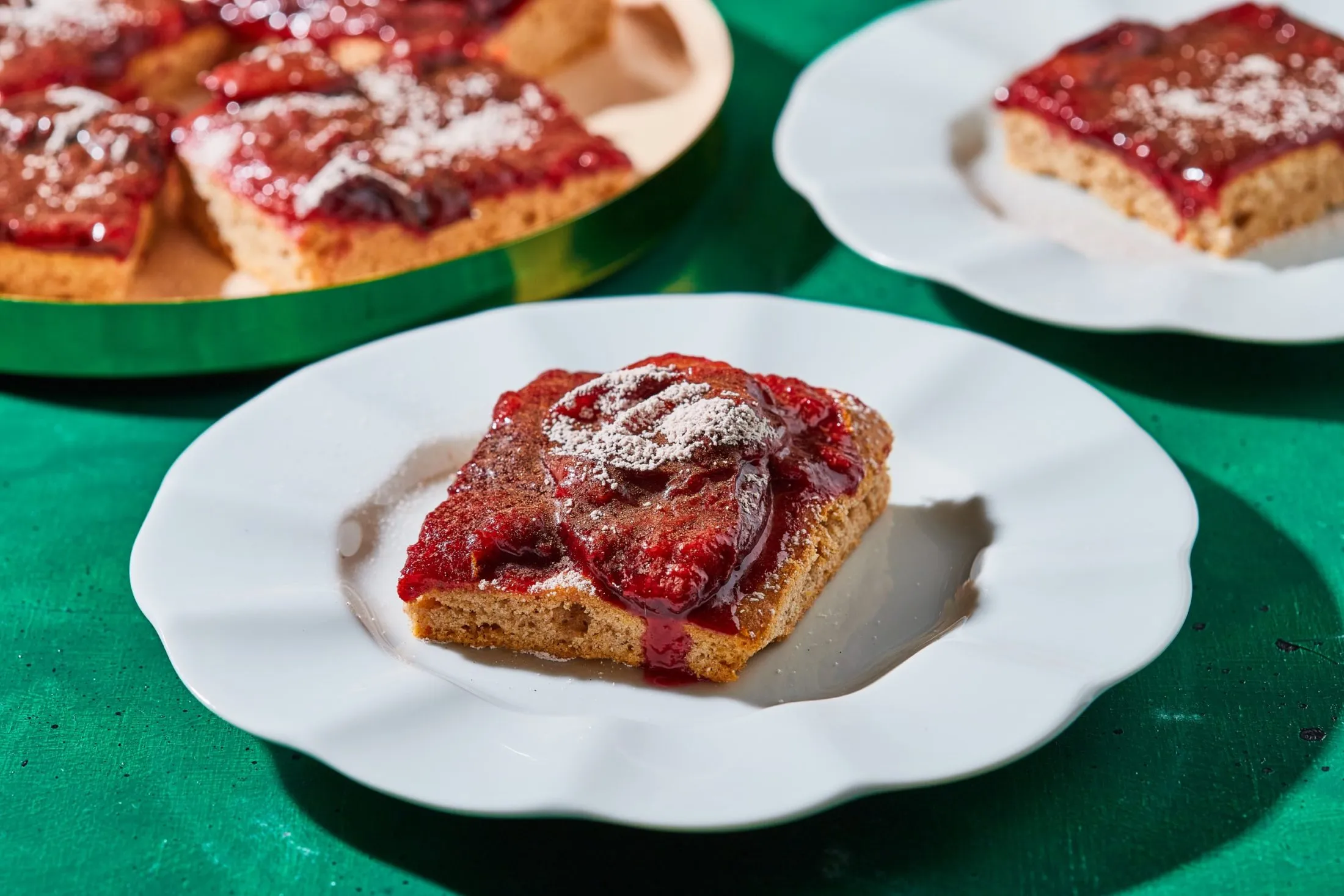 A szilvaraguhoz a kimagozott, elfelezett szilvát összekeverjük a fahéjjal, a citromlével, a cukorral és a vízzel, majd 7-8 percig rotyogtatjuk egy lábasban. A keményítőt kikeverjük a vízzel, és hozzáadjuk a raguhoz. Ha besűrűsödött, elzárjuk, és hagyjuk kihűlni. Rákenjük a megsült piskótára, nagyobb szeleteket vágunk belőle, és ha szeretjük, porcukorral is megszórhatjuk a tetejét.