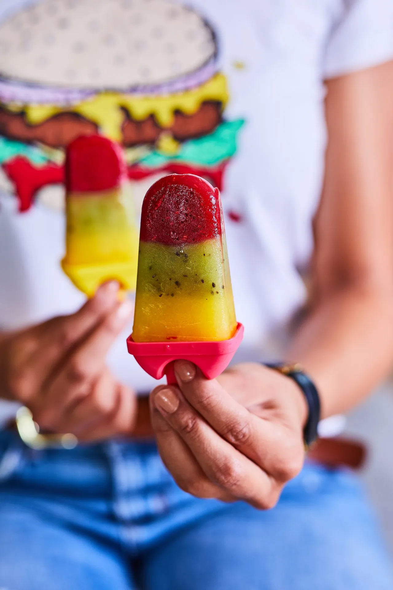 Persze a házi krémes, tejszínes fagyik és jégkrémek a világ legszuperebb nyári desszertjei, de ha kicsit egészségesebb vonalat szeretnénk követni, akkor friss gyümölcspüréből is lehet ilyet készíteni. Kapjatok elő pár jégkrémformát és a kedvenc gyümölcseiteket, és préselésre, plusz fagyasztásra fel!