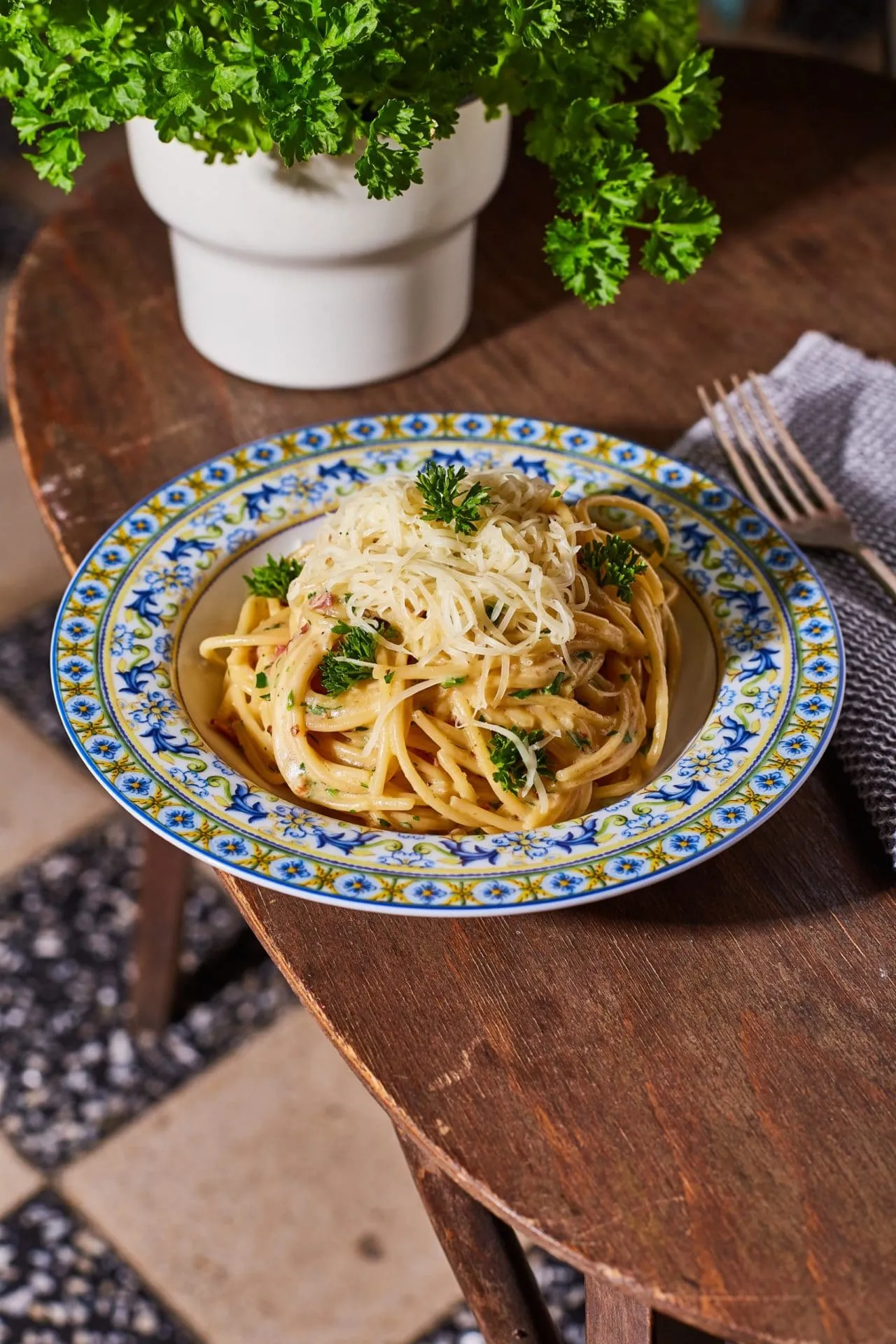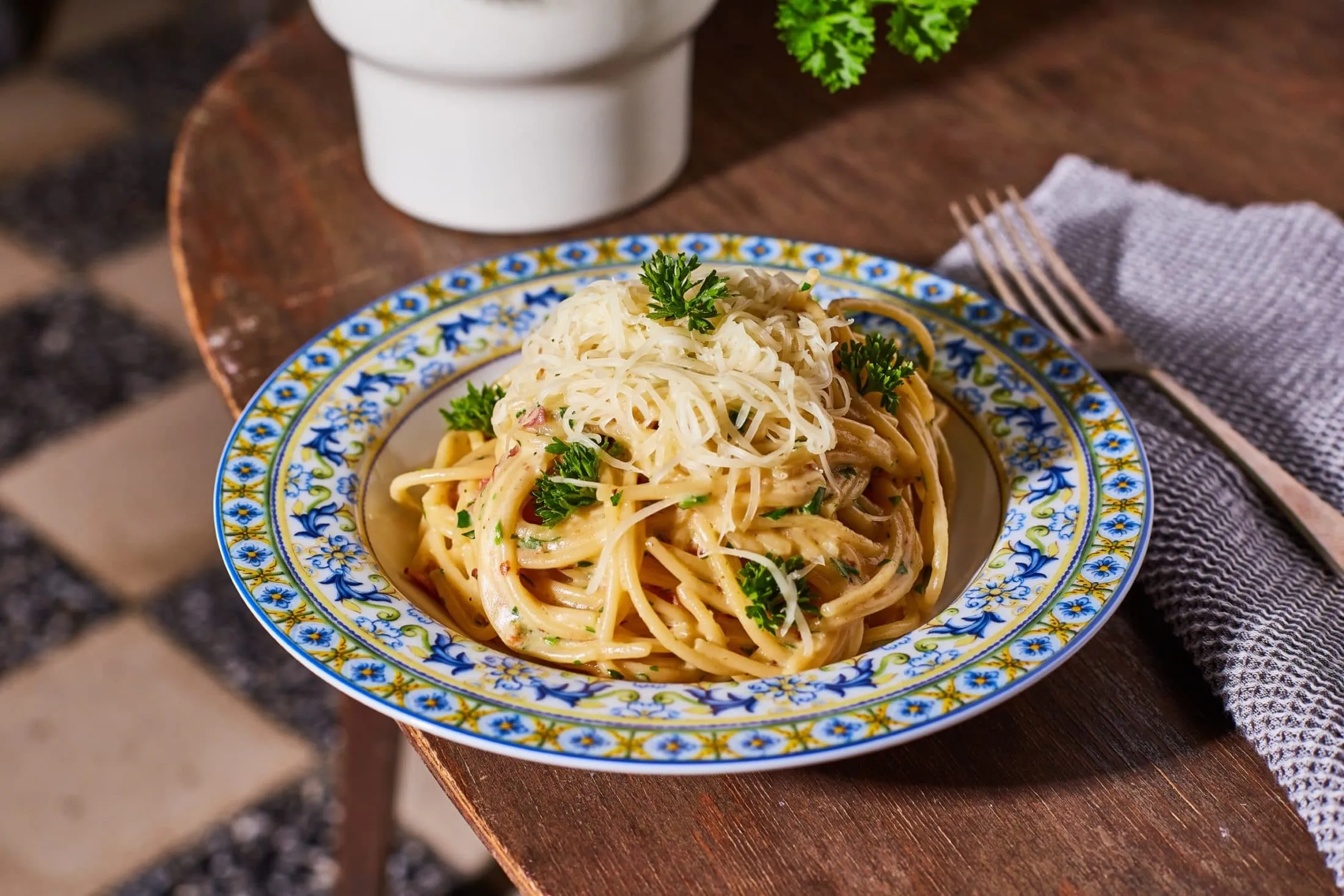 A tésztát bő, lobogó, sós vízben a csomagoláson leírt idő alatt megfőzzük. Leszűréskor egy keveset megtartunk a főzőléből, ha esetleg nagyon besűrűsödne a mártás, ezzel tudjuk hígítani a végén.