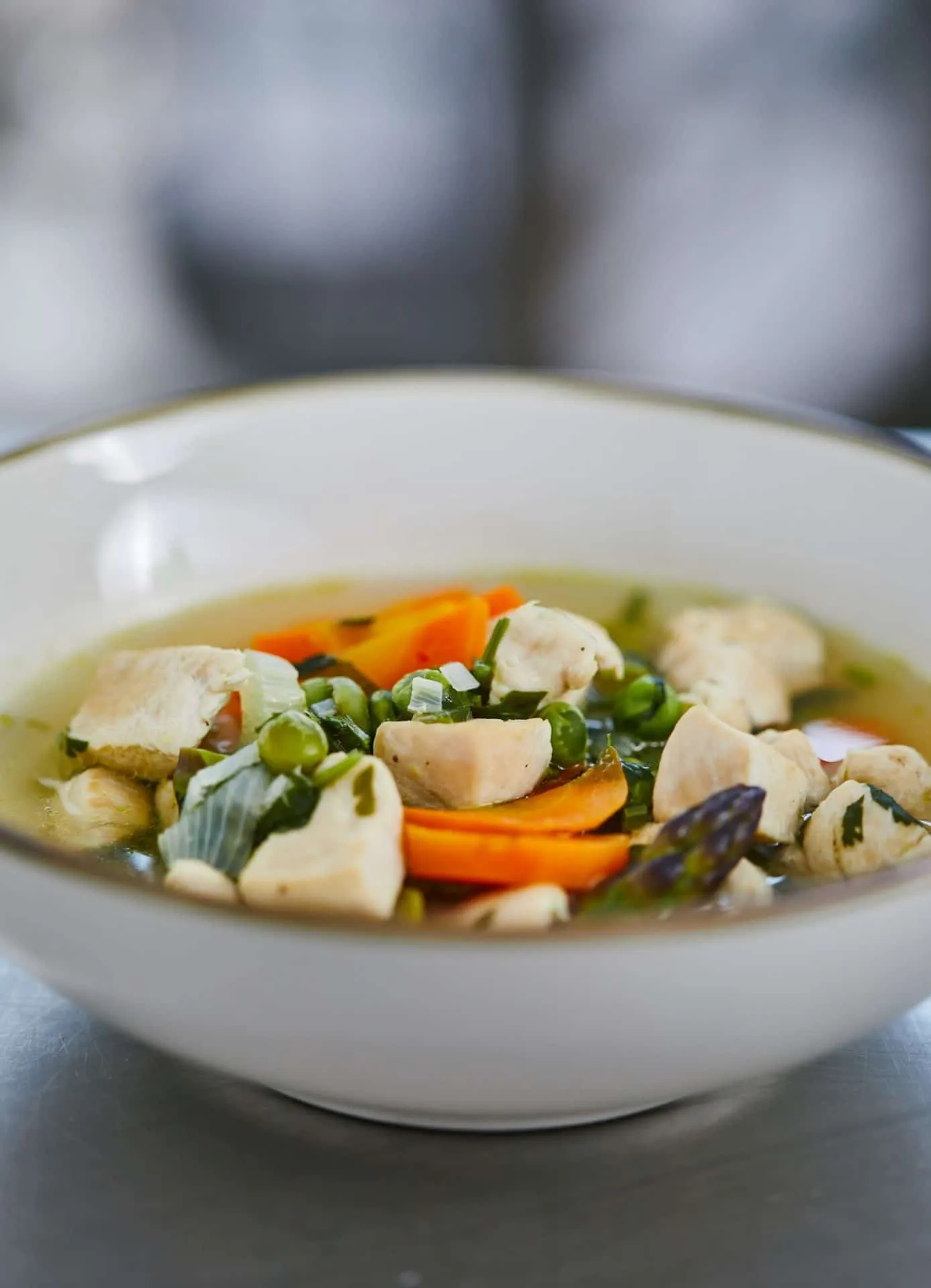 Igazi tavaszi csirkés zöldségleves! A rengeteg zöld fűszertől, citromtól pedig szuperfriss az egész, és nagyon egészséges.