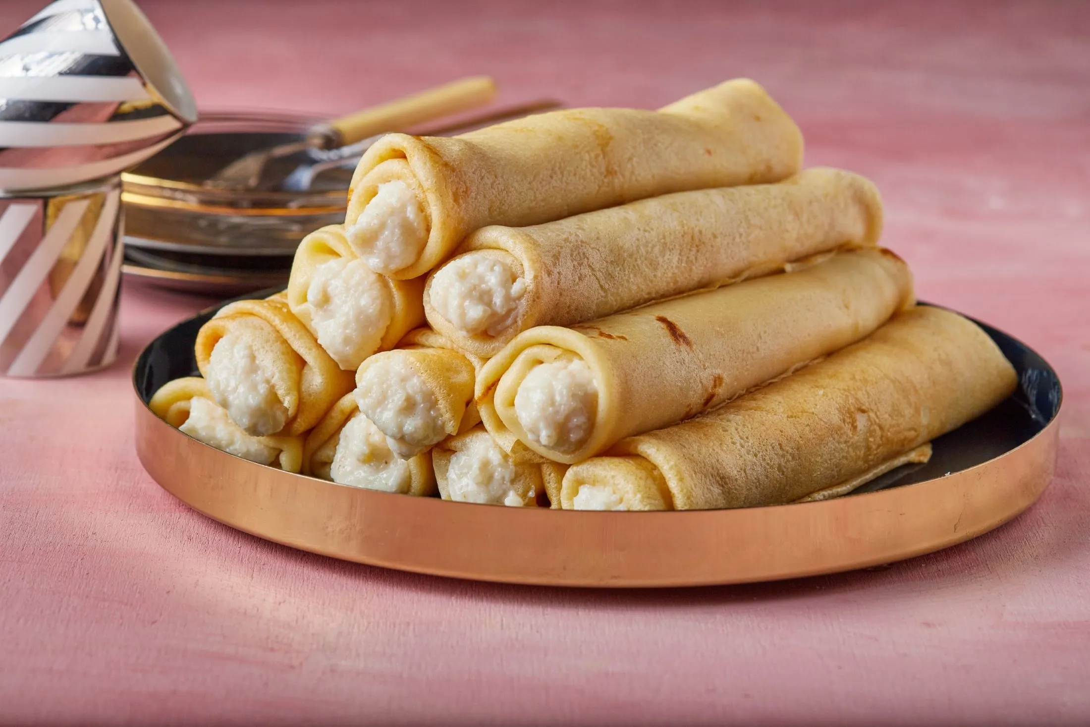 A töltelék hozzávalóit összekeverjük egy gyorsforralóban, és kb. 10 perc alatt tejbegrízt főzünk belőle. A palacsintákba töltjük, feltekerjük, és meg is vagyunk.