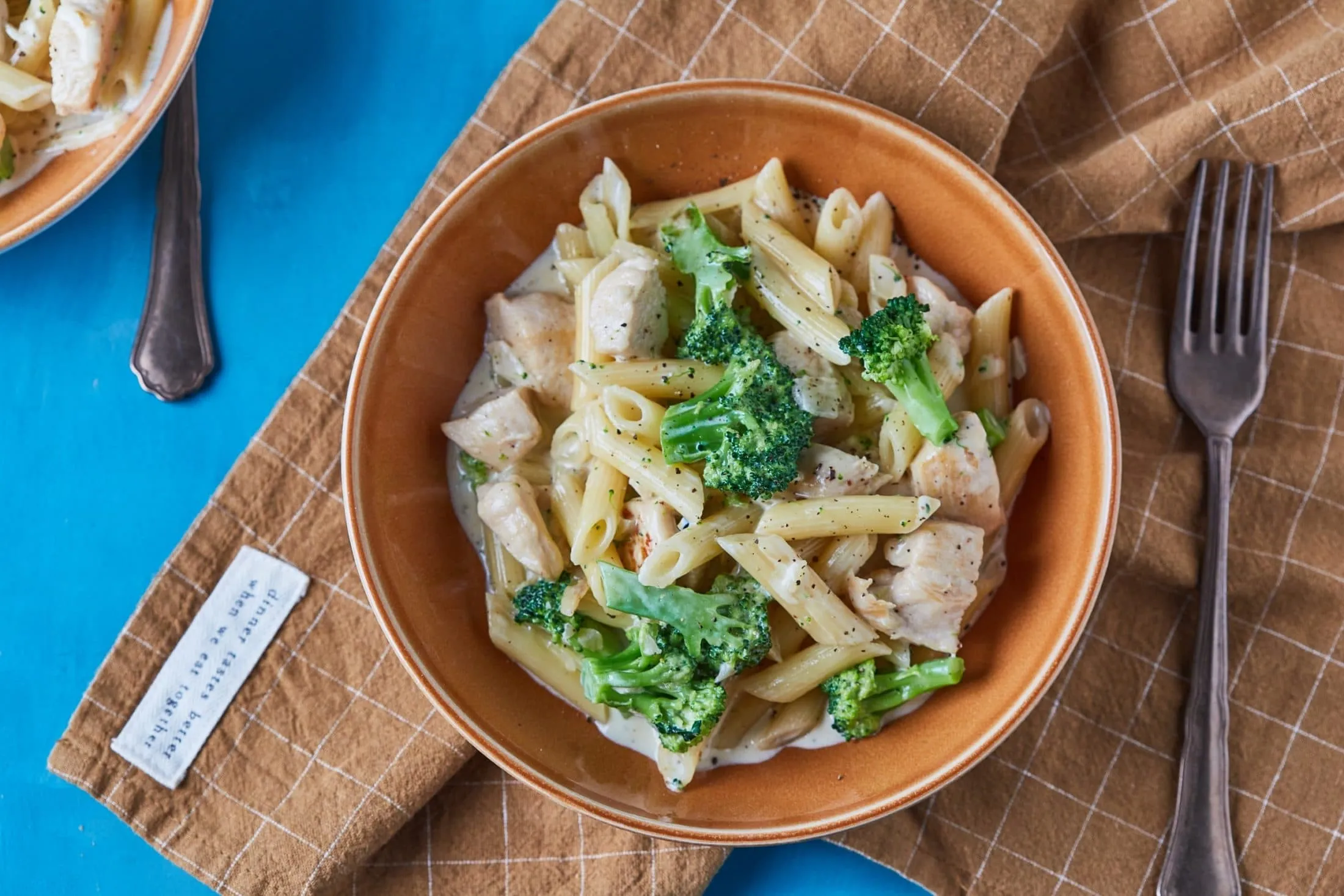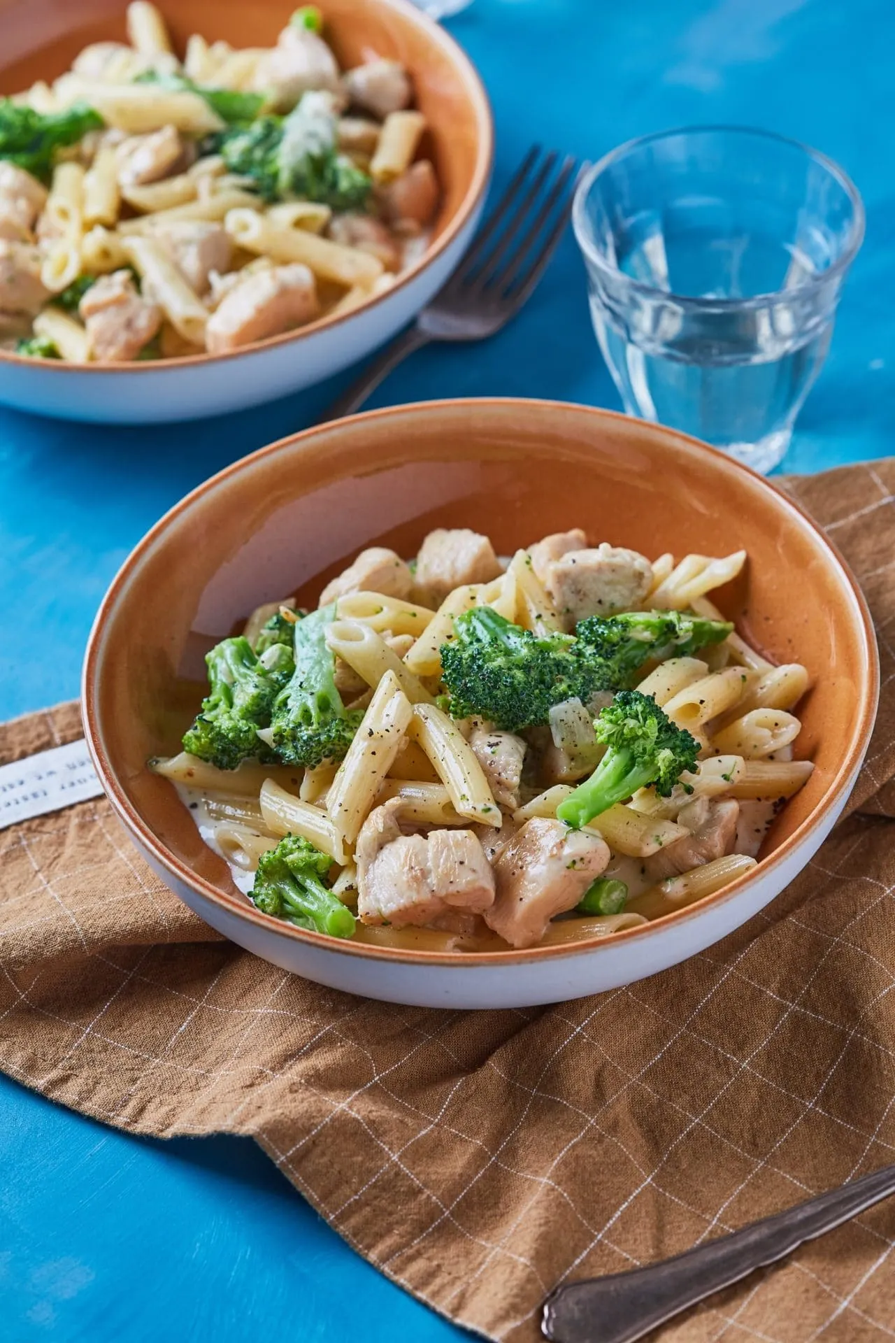 A pennét sós vízben al dentére főzzük, majd a főzés befejezte előtt 2 perccel beledobjuk a kis rózsákra vágott brokkolit, és az egészet leszűrjük.