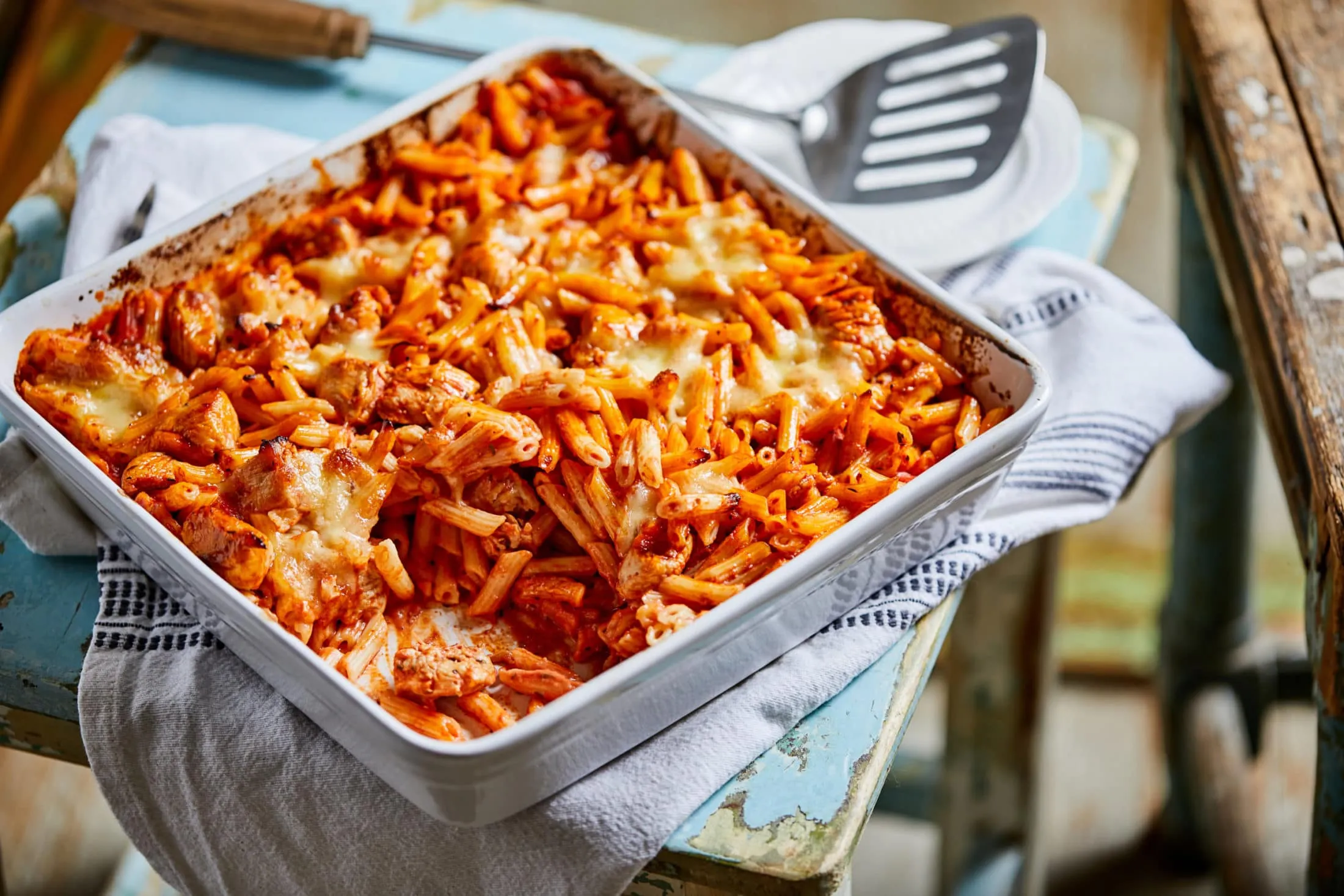 A tejszínes-paradicsomos-csirkés pennéhez a tésztát sós, lobogó vízben al dentére főzzük, leszűrjük, és a főzővizet megtartjuk.