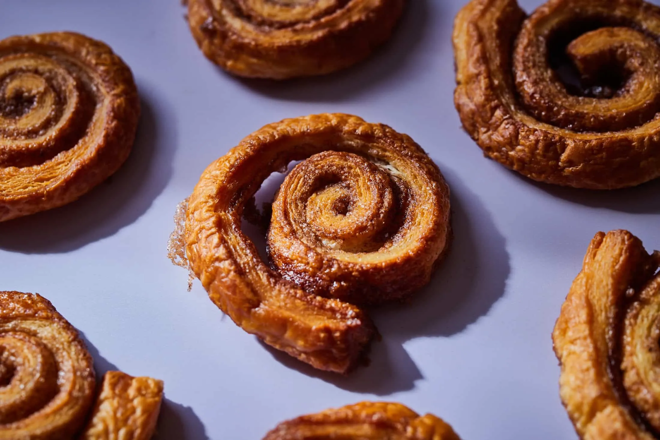 A téli fűszeres csiga elkészítéséhez a tésztát kihajtogatjuk. A puha vajat összekeverjük a cukorral és a fűszerekkel, és megkenjük vele a tésztát, majd a hosszabbik oldala mentén feltekerjük.