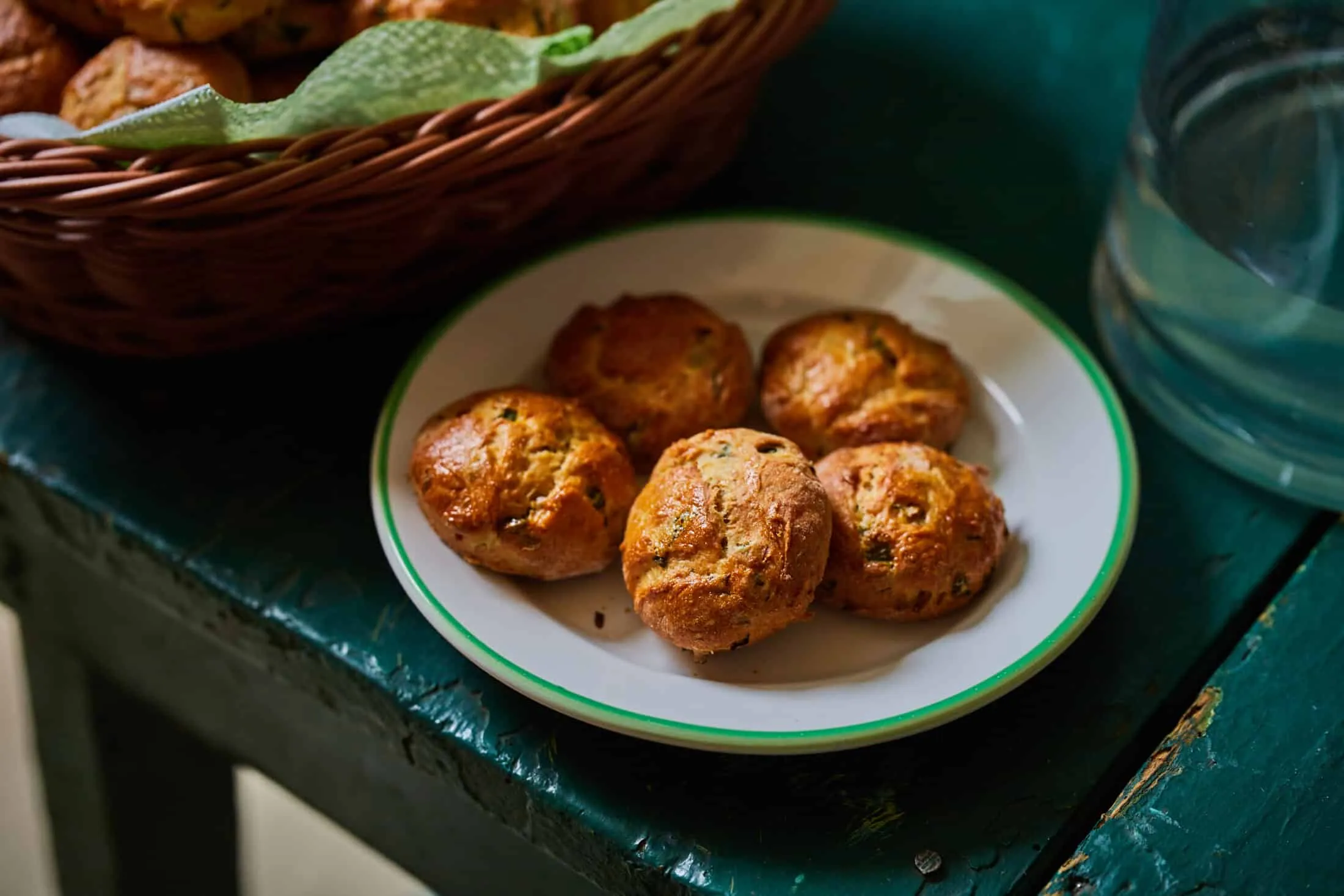 A pogácsákat tepsire sorakoztatjuk, a tetejüket lekenjük a tojással, és 180 fokra előmelegített sütőben 17-18 perc alatt megsütjük.