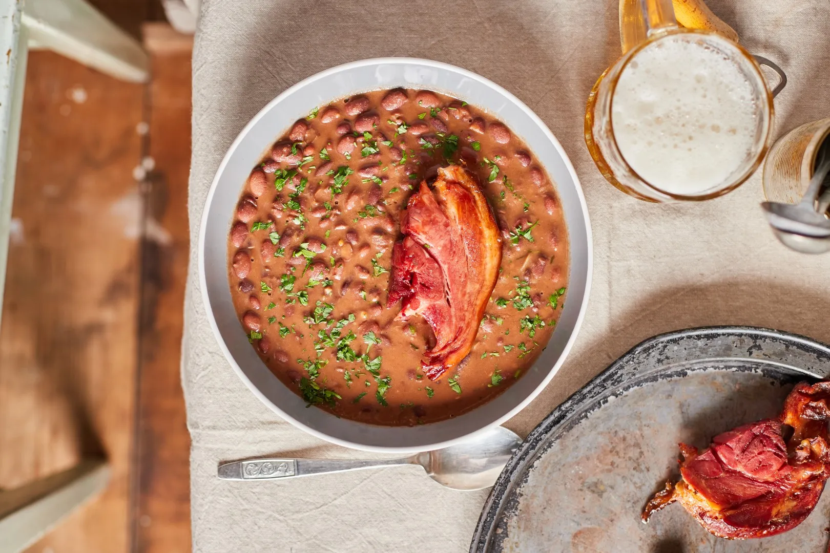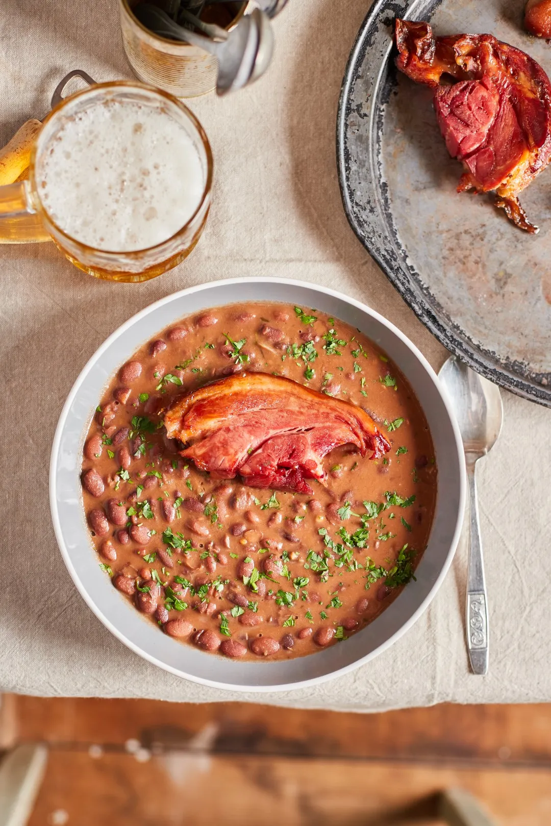 A csülköt először megfőzzük. Az előzőleg egy éjszakára beáztatott babot leszűrjük, először só nélküli vízben feltesszük főni, mehet bele egy megtisztított egész fej hagyma, a fokhagymagerezdek és a fűszerek.