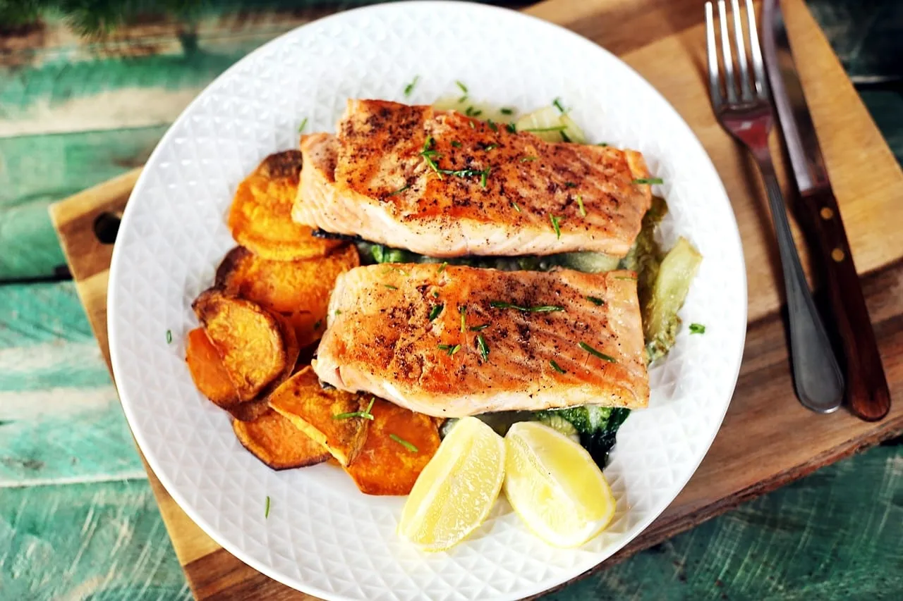 A magyarországi halfogyasztás diagramként ábrázolva egy hosszú lapos vonal, ami a hekk szezonban és december végén mutat némi emelkedést. Ilyenkor is érdemes kimozdulni a rántott ponty nyújtotta komfortzónából és kipróbálni valami izgisebb dolgot. Most hoztunk egy jó kis lazacos receptet remuládmártással, édesburgonyával, grillezett szívsalátával és egy csipetnyi szeretettel! :D