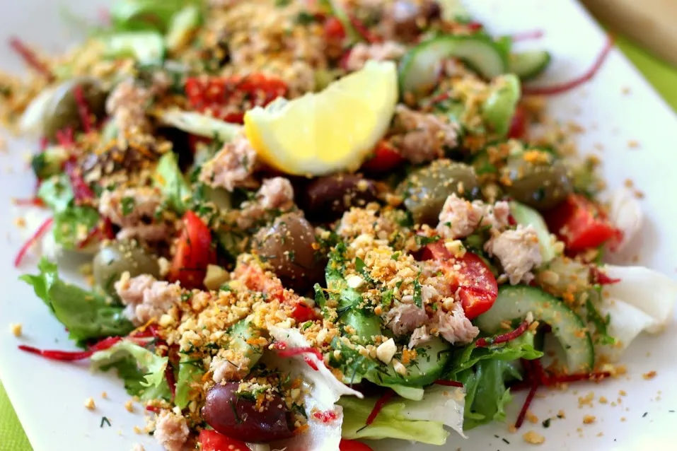 A frissen sütött tonhalnál kevés finomabb dolog van, de ahhoz érdemes egy picit közelebb lenni a tengerhez. Egy konzerv tonhalnak, lássuk be, a frisshez nem sok köze van, de szuper salátát lehet belőle készíteni, rajta citrusos, fűszeres ropogós morzsával (amit akár tésztára, vagy egy krémlevesre is szórhatunk). Pillanatok alatt megvan és kész is egy gyors hétköznapi ebéd, amitől nem is kerülünk kétórás kajakómába munkaidő közben.