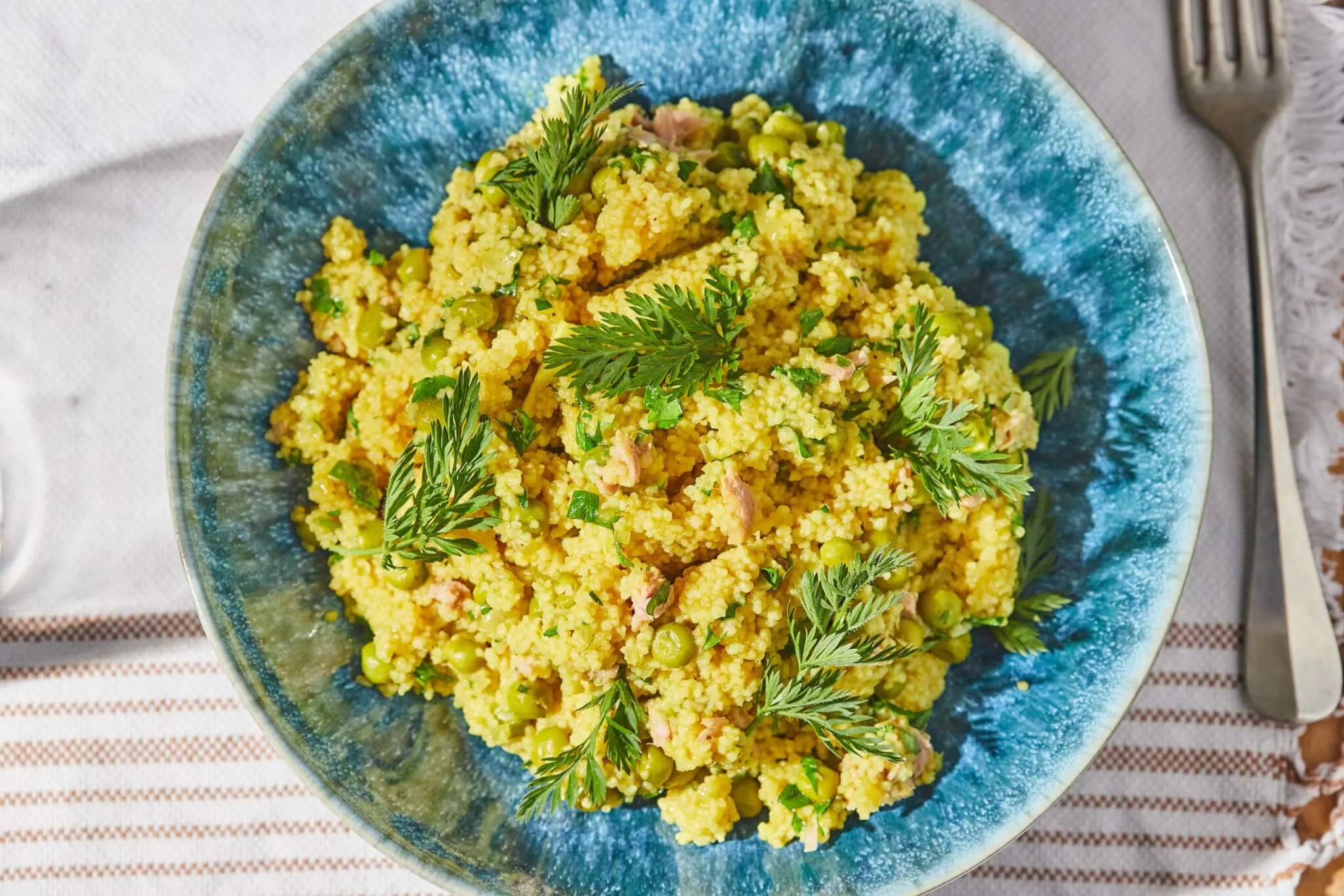 A finomra aprított hagymát és fokhagymát 2-3 perc alatt lepirítjuk az olívaolajon, majd hozzádobjuk a borsót, és még 1 percig pirítjuk. Rátesszük a curryt, a zöldségalaplevet és a citromlevet, sózzuk, borsozzuk, majd felforraljuk. Hozzáadjuk a tonhalat és a kuszkuszt, lefedjük, és hagyjuk állni 10 percet. Végül belekeverjük az aprított petrezselymet is. Bon appetit! Fogyasszátok melegen, de akár hidegen is.