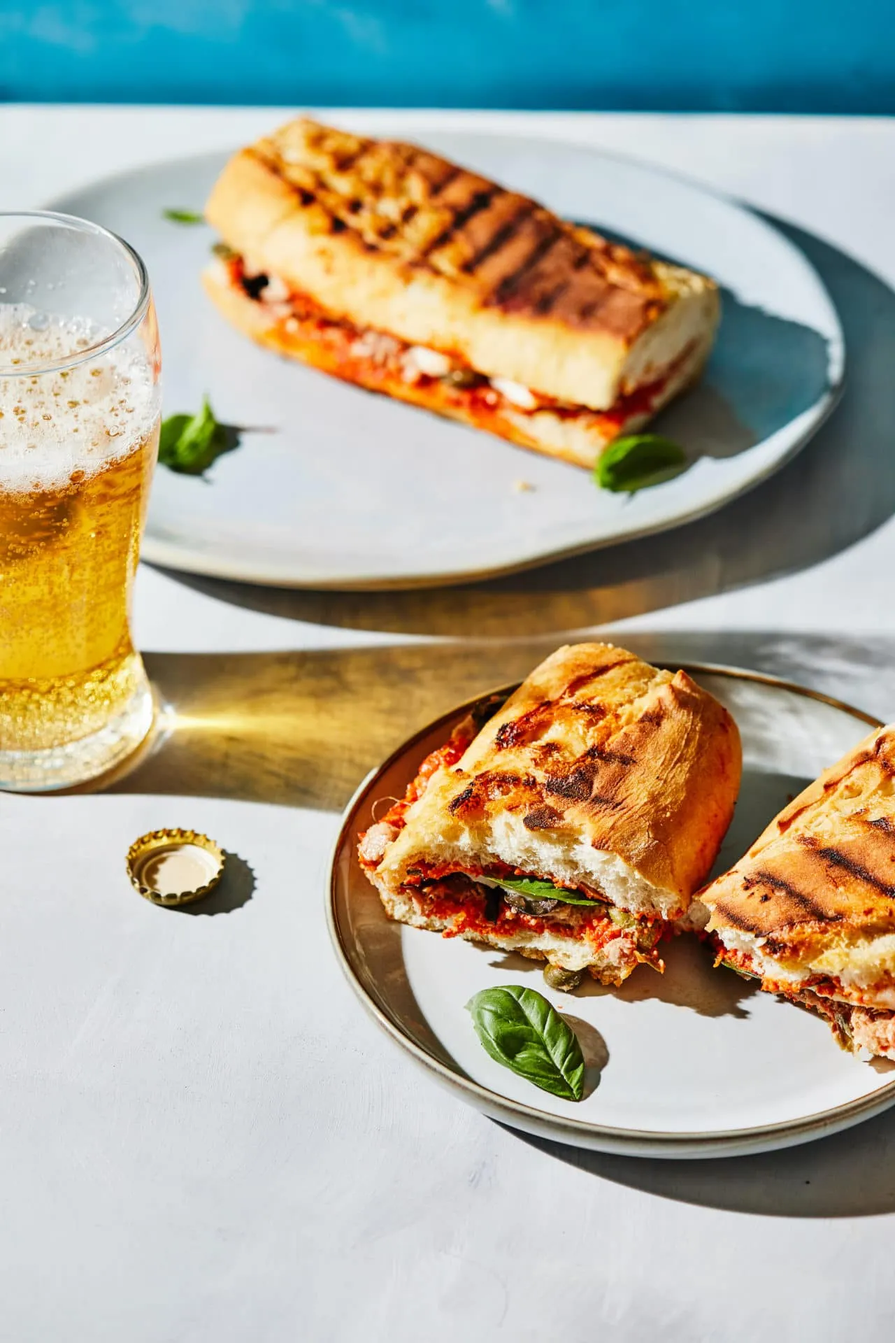 A bagettet hosszában és keresztben is félbevágjuk, megkenjük a kápiapesztóval, rátesszük a tonhalat, a fekete olajbogyót és a kapribogyót. A mozzarellát felszeleteljük, ezt is ráhelyezzük, majd jöhetnek a bazsalikomlevelek. Rárakjuk a bagett tetejét.