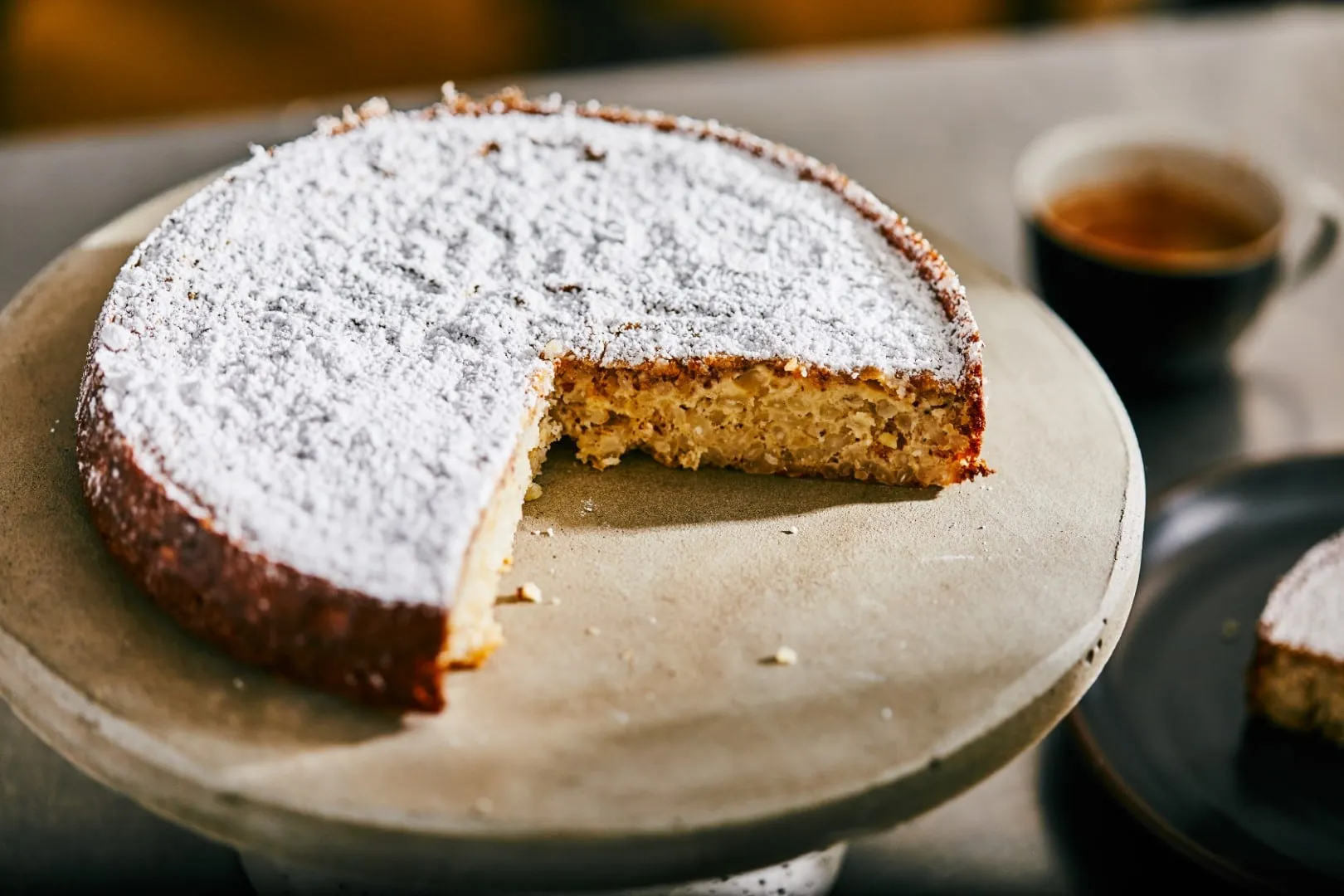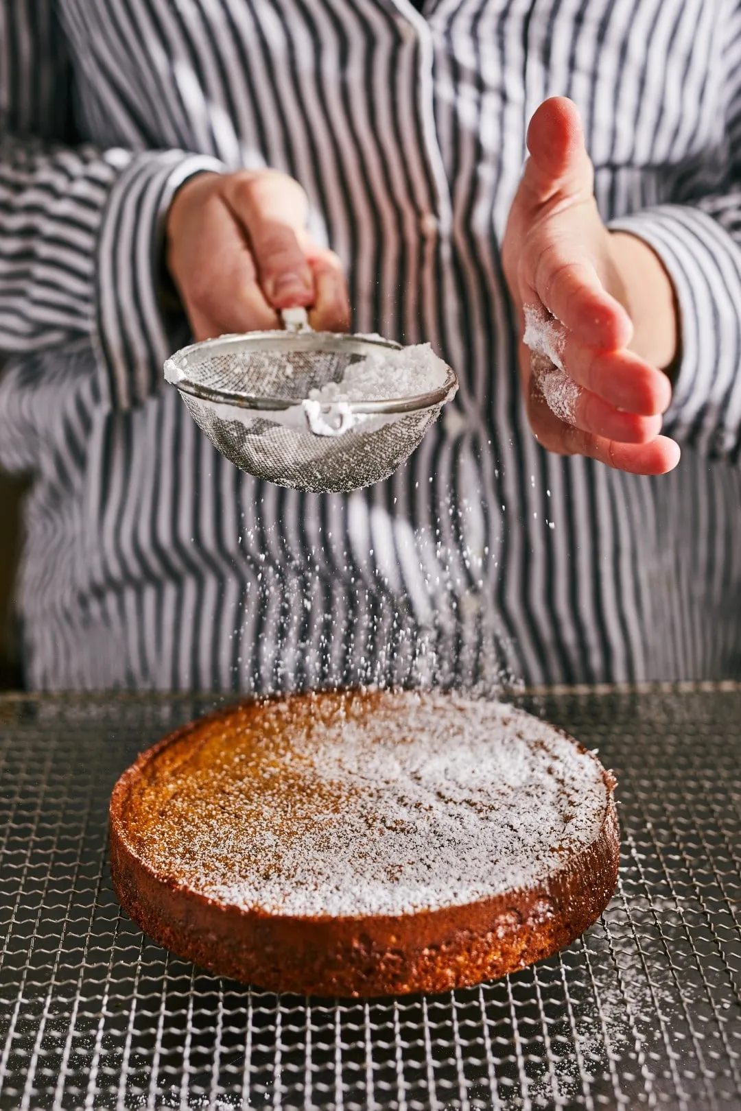 A tojást fehéredésig verjük a cukorral. Belekeverjük egy spatulával a darált mandulát, majd a rizses keveréket és a maradék amarettót. Sütőpapírral bélelt tortaformában, 180 fokra előmelegített sütőben 50 percig sütjük. Félidőben, ha nagyon barnulna a teteje, lefedjük egy alufóliával. Ha elkészült, porcukorral díszítjük.