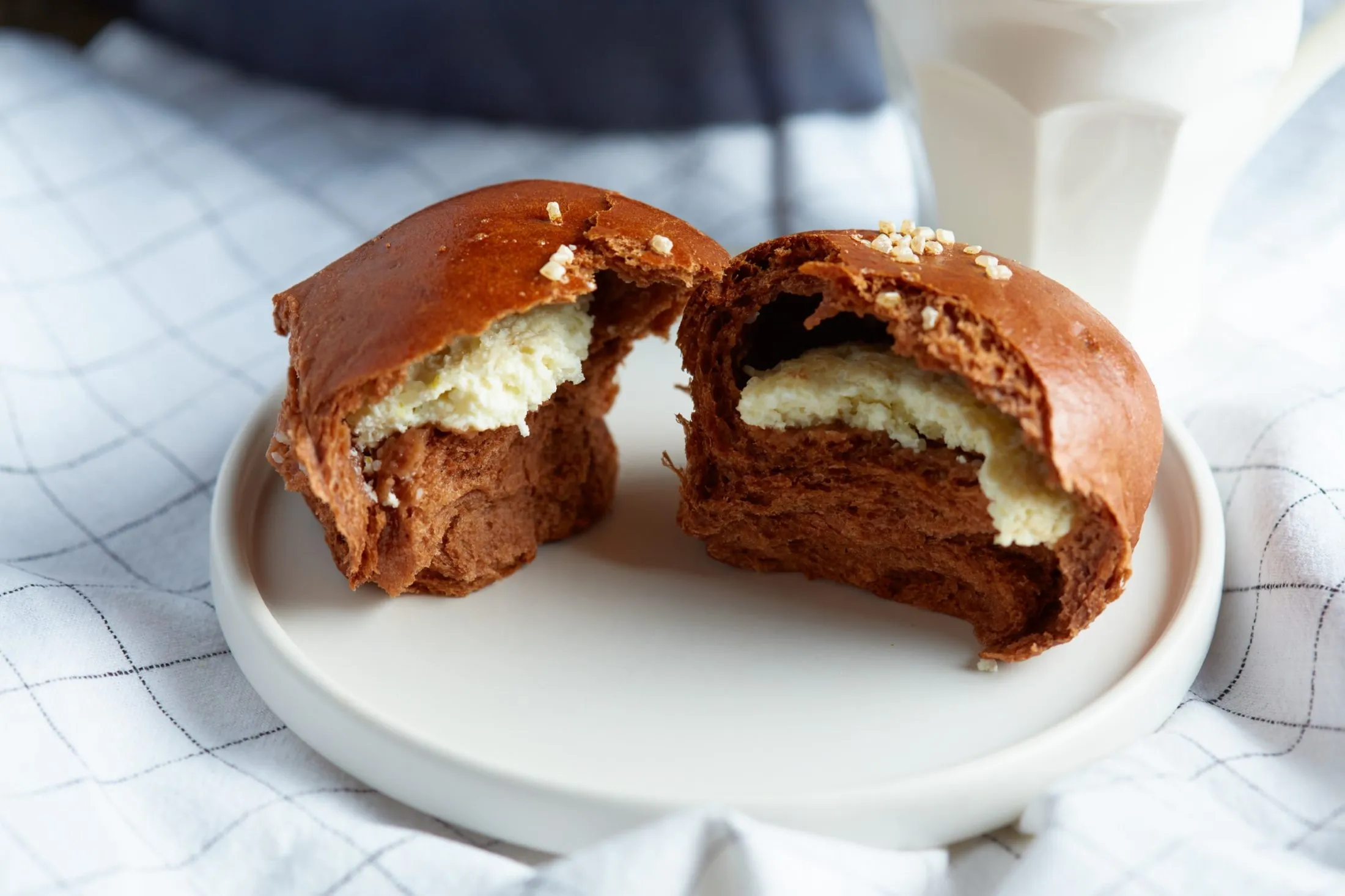 A tésztához a lisztet, a sót és a kakaóport egy tálba mérjük, és összekeverjük. A tejben elkeverjük az élesztőt, a liszthez öntjük, majd mehet bele a cukor és a tojás is. Elkezdjük összekeverni a tésztát, majd amikor összeállt, beledolgozzuk a vajat, és bedagasztjuk. Cipóvá formázzuk és 1 órát kelesztjük.