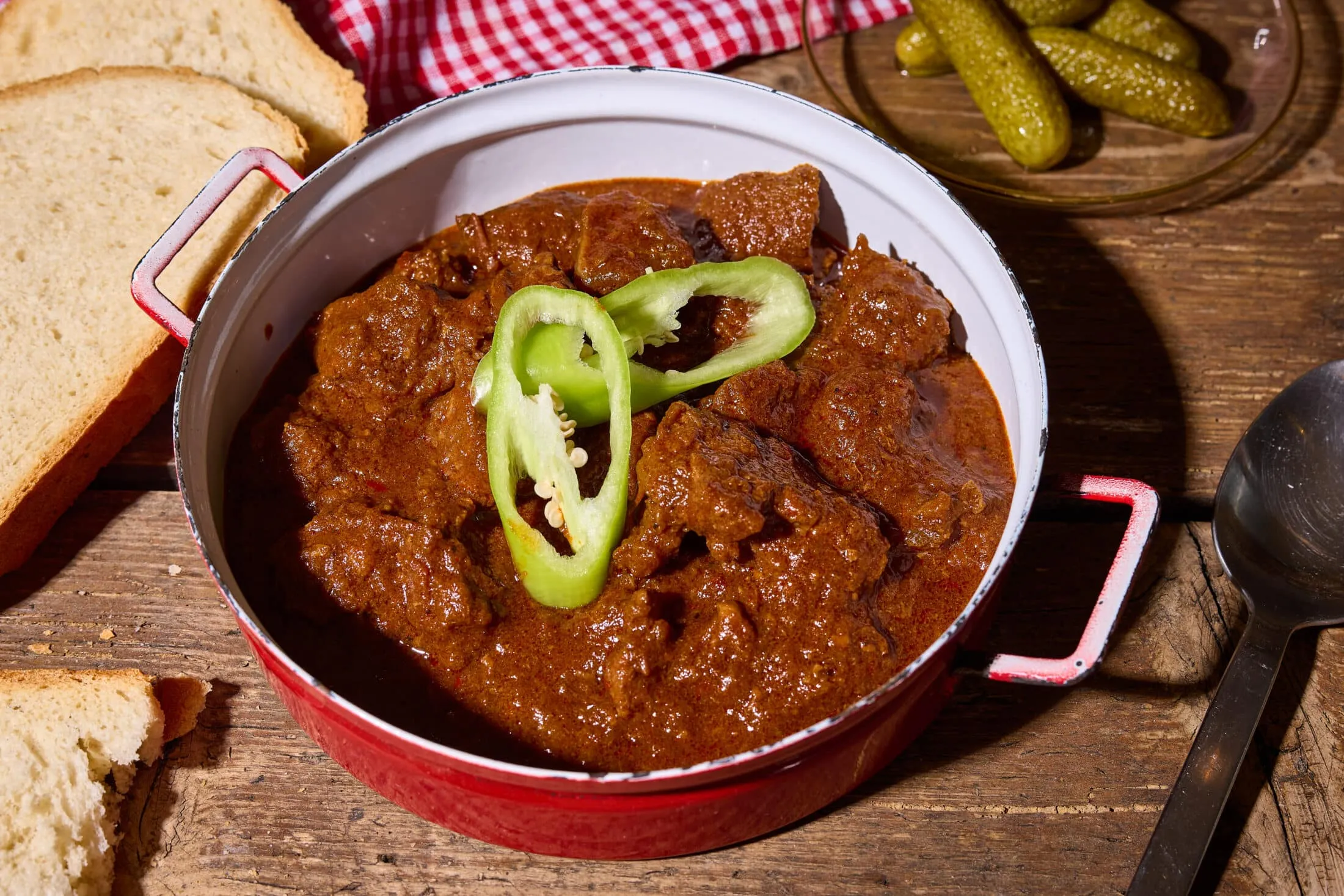 Közepesen erős tűzön addig főzzük, amíg a hús teljesen meg nem puhul. A főzési idő is függ a hús minőségétől és az állat korától. Annyi dolgunk van, hogy a folyadékot folyamatosan pótoljuk úgy, hogy a végén már ne lepje el a húst, hanem egy sűrű szaftra törekedjünk. Természetesen időnként keverjük meg, mert a szaft a bogrács alján kezd majd el képződni, és kár lenne, ha leégne. A főzés utolsó 10 percében hozzáadjuk a vörösbort is, majd levesszük a tűzről, és ha már szabadtűzön készült, friss kenyérrel és hegyes erős paprikával tálaljuk.