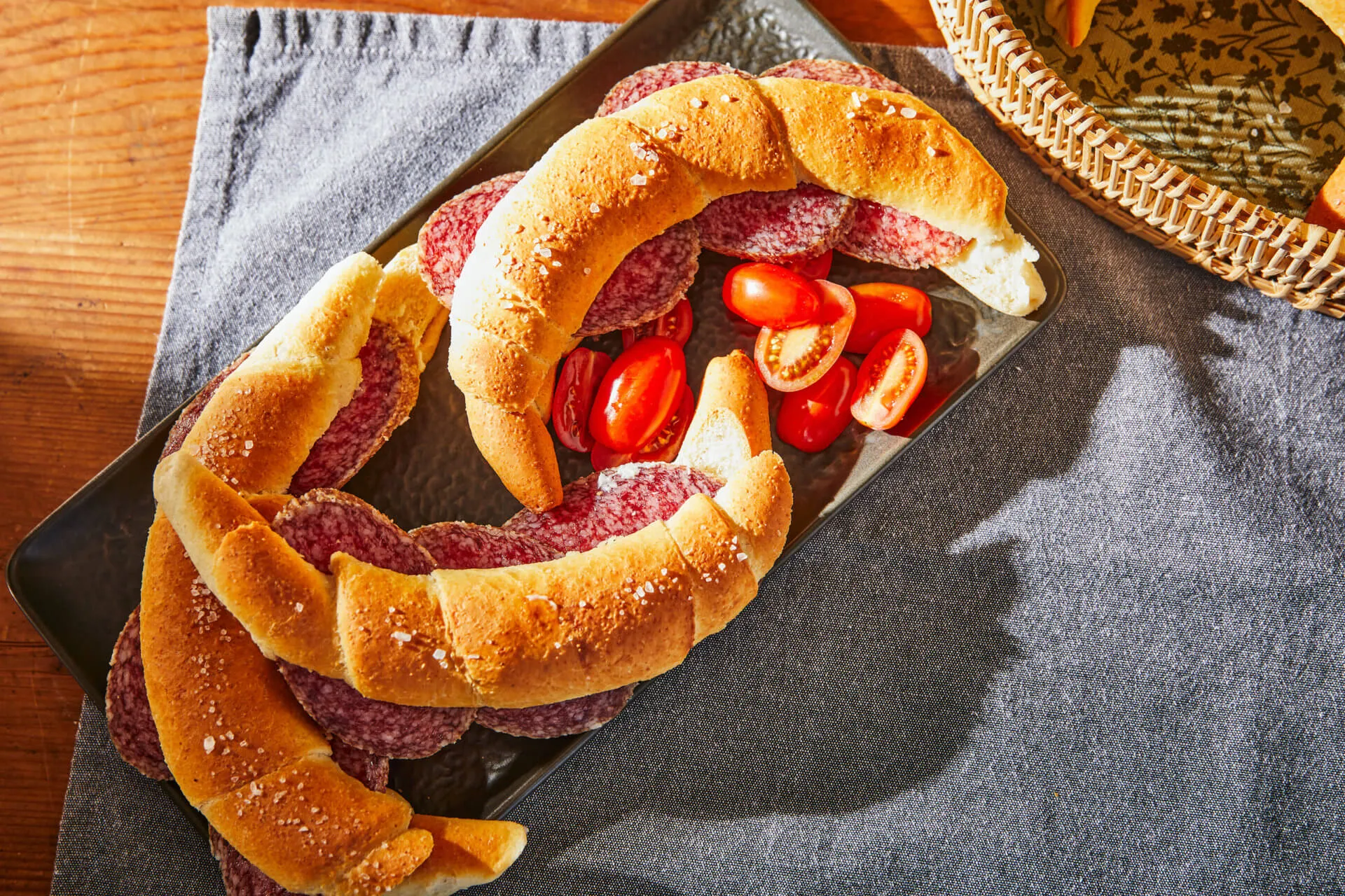 A szép, szoros feltekerésnél hasznunkra válik, hogy a tészta kissé tapad: a cikk íve felől haladva a tenyerünket magunk felé húzva megadjuk a kifli formáját. Tetszőlegesen egy kis ívet hajtunk bele, majd szépen sorba rakjuk a nyers kifliket, és letakarva újabb fél órán át kelesztjük.