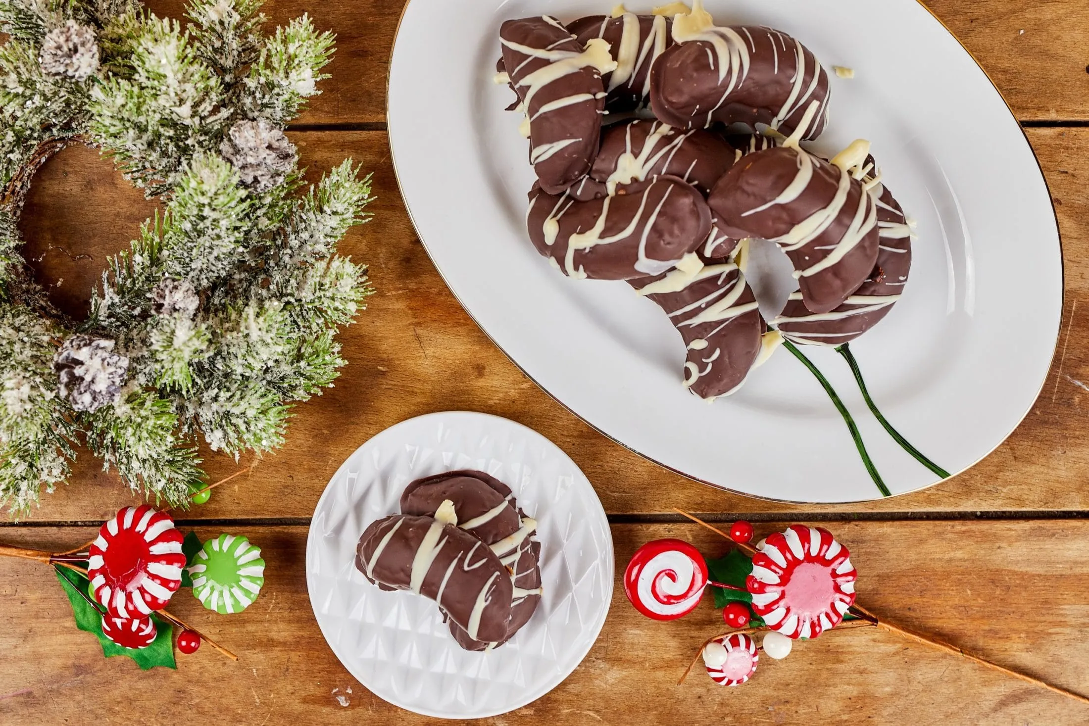 A fehér csokit is az imént leírtak szerint felolvasztjuk. Ha megolvadt, egy kanál segítségével random rácsurgatjuk a kiflikre, hogy még mutatósabbak legyenek. Ismét hűvös helyre tesszük, hogy megdermedjenek, és már ehetjük is.