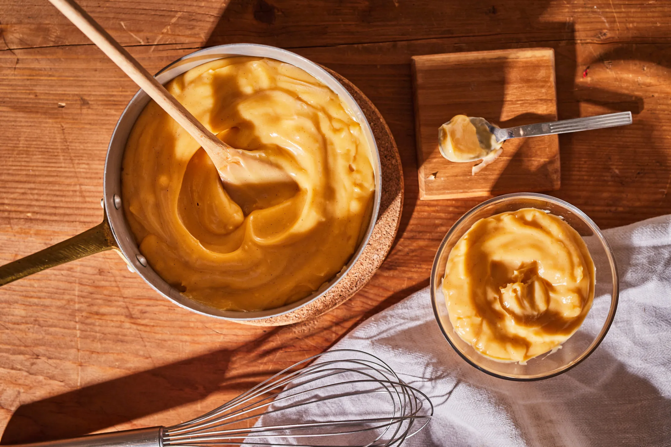 A vaníliás tortakrémhez a tojássárgájákat egy nyeles forralóba ütjük és a porcukorral, a keményítővel és kb. 50 ml tejjel, habverő segítségével habosra keverjük. A maradék tejbe beletesszük a vaníliaaromát és az őrleményt, majd felforraljuk. Amikor felforrt, lehúzzuk a tűzhelyről, és lassan belecsorgatjuk a tojásos keverékbe, miközben folyamatosan keverjük, nehogy egy vaníliás rántotta legyen a végeredmény.