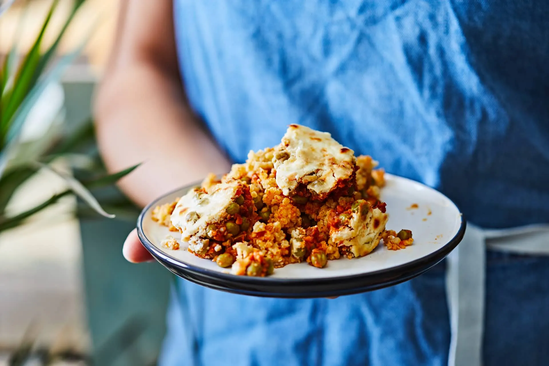 Ezután egy közepes nagyságú tálba rétegezzük: először jöhet a köles fele, erre a borsós ragu fele, majd a maradék köles és borsós ragu. A tetejére kenjük a tejfölt, és 200 fokra előmelegített sütőben addig sütjük, amíg meg nem pirul.