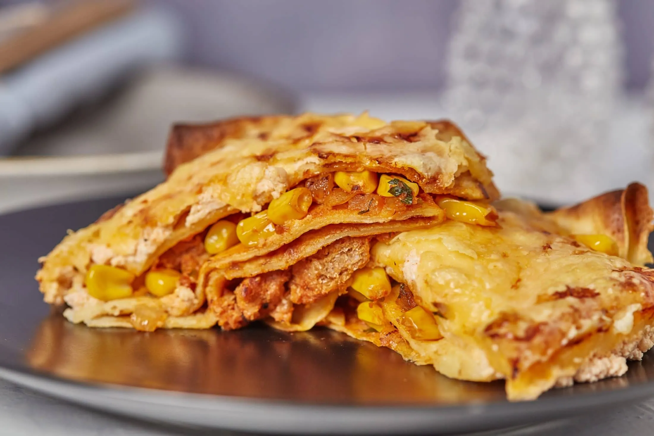 Vega töltött palacsinta sajttal, tejföllel besütve