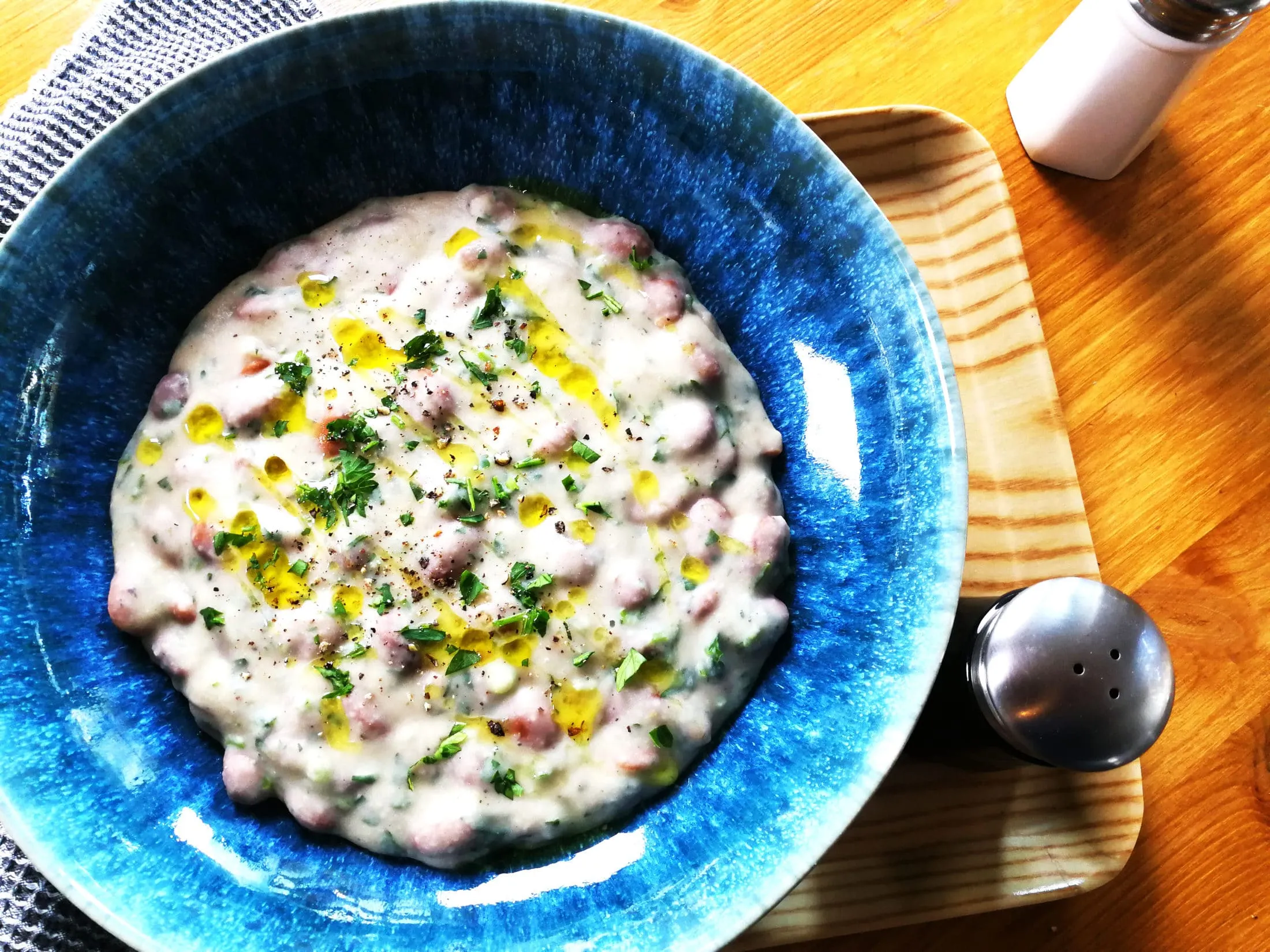 Az egészet botmixerrel, késes aprítóval vagy turmixgéppel szép krémesre pürésítjük. Visszapakoljuk a lábasba, hozzáadjuk a másik átöblített babot egészben, és további 5 percig főzzük. Megkóstoljuk, ízlés szerint még sózzuk, borsozzuk, és egy kis csokor finomra vágott petrezselyemmel, kis reszelt citromhéjjal és friss citromlével turbózzuk. Utolsó lépésként, ha túl sűrű, még egy kevés vizet adunk hozzá, hogy szép főzelékes állagot kapjunk. Kész is! Magában is tökéletes, de egy tetejére dobott sült virslivel sem lehet elrontani.