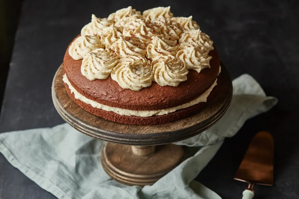 A krémes réteget a másik piskótalappal lefedjük, a tetején pedig tetszőlegesen eloszlatjuk a megmaradt krémet, majd az egészet hűtőbe tesszük legalább 2-3 órára. A tetejét ízlés szerint megszórhatjuk csokireszelékkel.