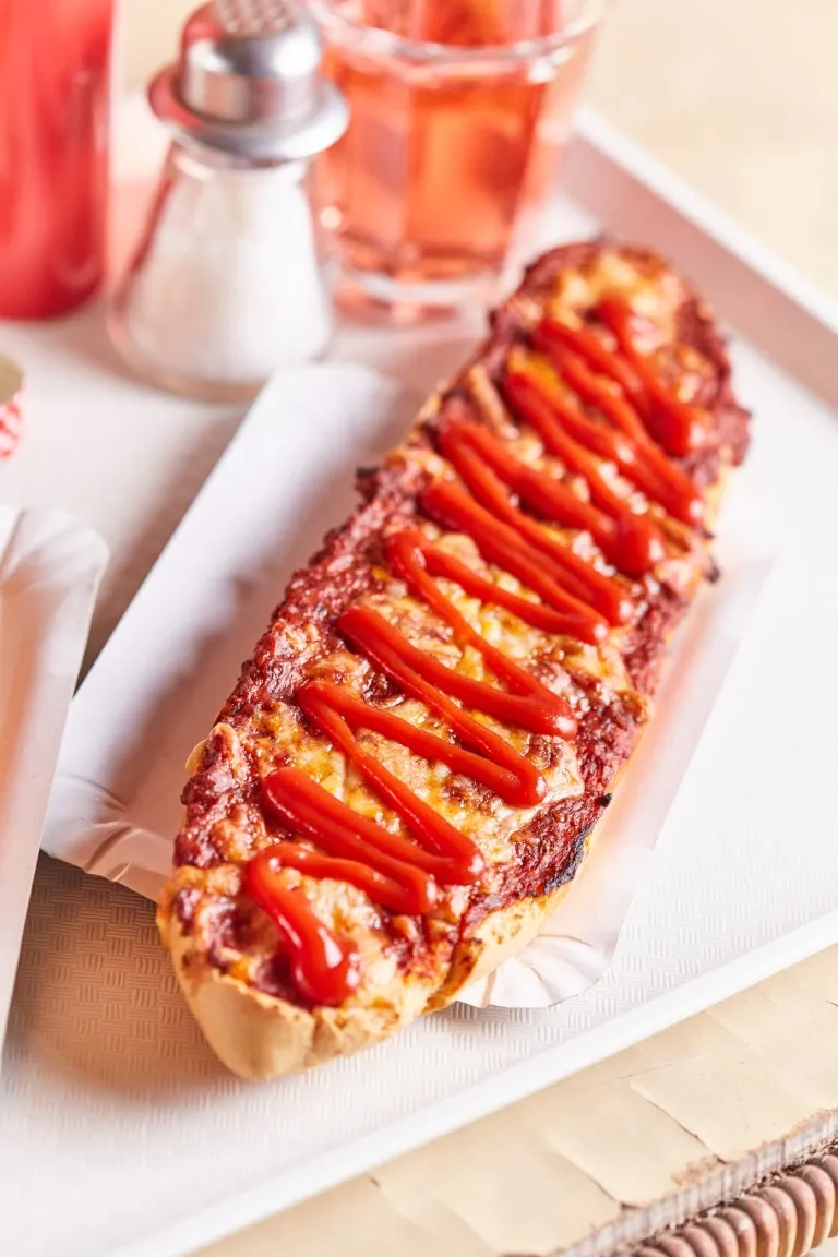 Egy lábasban olajon a finomra vágott hagymát üvegesre pirítjuk, majd rádobjuk a vékonyra szeletelt fokhagymát; addig hevítjük, míg erősen illatozni kezd. Ekkor rádobjuk a darált húst és együtt magas lángon jól lepirítjuk. Felöntjük a passatával, sózzuk, borsozzuk és fűszerezzük a szárított olaszos zöldfűszerekkel. Hozzáadjuk a sűrített paradicsomot, felöntjük tejjel és kis lángon 15 percig rotyogtatjuk. A keményítőt kikeverjük a vízzel, ráöntjük a ragura és további 5 percig forraljuk erős kevergetés mellett, hogy szép krémes állagot érjünk el. A kapott pizzás melegszendvicskrémet félbevágott bagettre kenjük, megszórjuk sajttal és 200 fokon, grill funkcióval ropogósra sütjük. Ízlés szerint ketchuppal/majonézzel tálaljuk.
