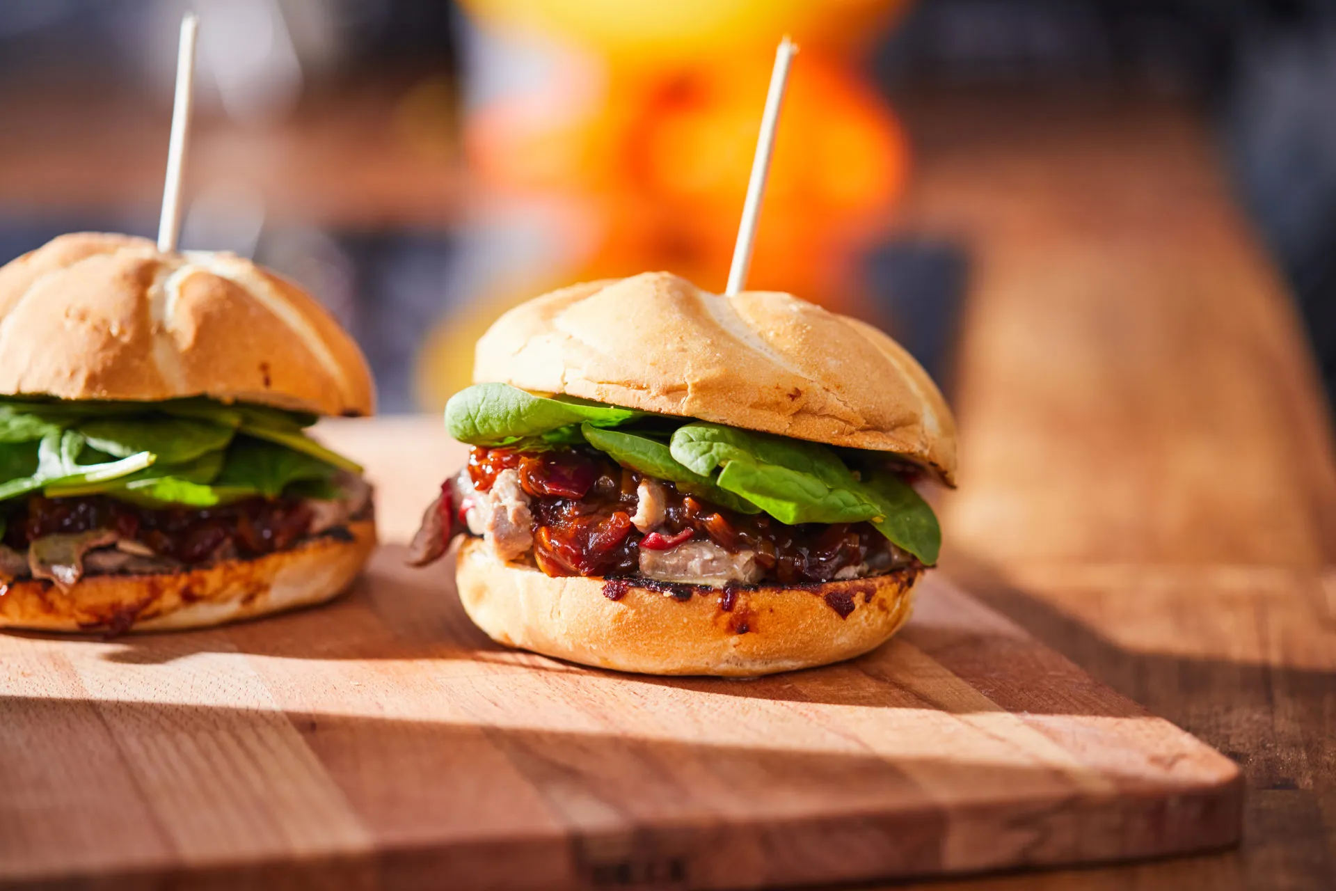 Jöhet az összeszerelés: a zsemle alsó felére egy kis húst pakolunk, megcsorgatjuk egy kis szafttal, rákanalazunk a felturbózott barbecue szószból, a tetejére rakunk egy kevés friss bébispenótot, végül rátesszük a kalapot, és tálalhatunk.